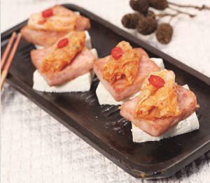 4. 두부, 햄, 김치 순으로 올려 한입에 먹을 수 있도록 준비한다./종합