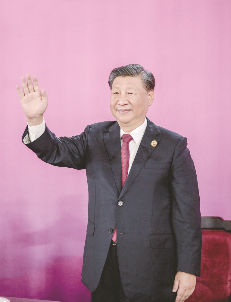 23일 저녁, 제19회 아시안게임이 절강성 항주시에서 성대히 개막되였다. 국가주석 습근평이 주석대에서 손을 저어 인사하고 있다. /신화사