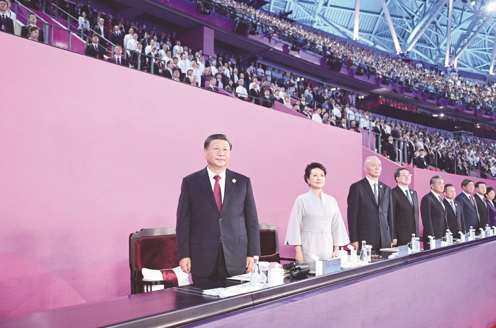 23일 저녁, 제19회 아시안게임이 절강성 항주시에서 성대히 개막되였다. 습근평, 채기, 정설상 등 당과 국가 지도자들이 개막식에 참가했다. /신화사
