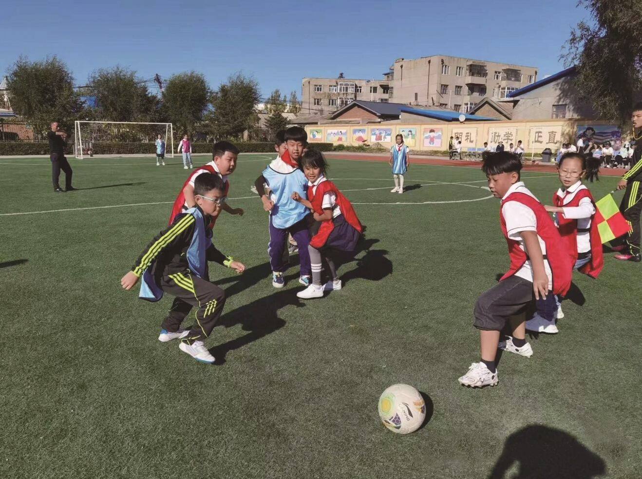갓 입학한 일학년친구들은 공을 다리밑으로 굴리기와 머리우로 넘기기 시합을 치뤘다. 사전에 반주임선생님, 체육선생님들이 손수 시범을 보여주고 여러번 련습을 거치고 치른 시합이였지만 생각대로 되지 않자 안타까워 속상해 하는 반주임, 처음으로 치르는 애들의 운동회에 참가하지 못한 부모님들의 마음을 헤아린 반주임들은 학생들의 시합모습들을 부지런히 폰에 담는다. 2학년 친구들은 심판원선생님의 지휘아래 질서정연하게 시합을 이어나갔다. 축구시합이 처음인 3학년 1반 친구들은 경기가 시작되자 팀원 6명이 모두 골문대 앞에서 일렬로 서서 어떻게 해야 할지 몰라 하는 눈치였다. 그 광경을 보고 선생님들은 배를 러안고 웃었다. 반주임이 설명해주자 그제야 공를 따라 여기저기 뛰여다녔다. 3학년 1반 반주임선생님은 축구장밖에서 경기를 관람하다가 선수들이 움직이지 않고 가만히 서있자 공을 따라 움직이라며 여기저기 뛰여다니며 지휘하느라 여념이 없다. 고잠헌 친구는 경기장에서 누구보다 날렵했고 순발력도 월등하였다. 애들속을 요리조리 빠져 잽싸게 공을 빼앗아 상대방골문쪽으로 슛을 날린다. 역시 에이스답게 멋진 공을 날렸다. 학생관객들은 일제히 박수갈채를 보내주었다. 반주임선생님들은 공을 차넣고 기뻐하는 친구들에게 잘했다고 어깨를 다독여주는가 하면 졌다고 우는 친구들에게 다가가 괜찮다고 포옹해주었다. 4학년의 리홍군 선생님은 애들속을 요리조리 헤집으며 멋진 모습들을 부지런히 핸드폰에 담는다. 5학년의 축구경기는 반주임까지 출전하여 이목을 끌었다. 6학년 경기는 두 팀 모두 실력이 비슷하여 경기내내 치렬하였다. 반주임 함계옥 선생님은 한쪽 팀이 피동에 처하자 장외에서 어떻게 수비하고 누구에게 공을 넘겨주라며 여러가지 전략을 제시해 주었다. 수시로 선수들을 교체하며 결국 쓰러져가는 팀을 승리에로 이끌었다.