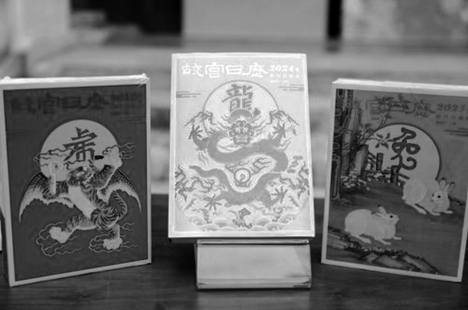 일전 2024년 ‘고궁일력’ 발표회가 북경고궁박물관에서 펼쳐졌다. 2024년 ‘고궁일력’ 시리즈에는 띠와 명절을 주제로 한 ‘고궁일력·2024년’, 서화작품을 주제로 한 ‘고궁일력·서화판·2024년’, 문물이야기를 특색으로 한 ‘고궁일력·2024년·아동판’과 ‘고궁일력·한영대조판·2024년’이 포함된다. 사진은 고궁에 진렬된 2022년, 2023년, 2024년 ‘고궁일력’이다. /신화사