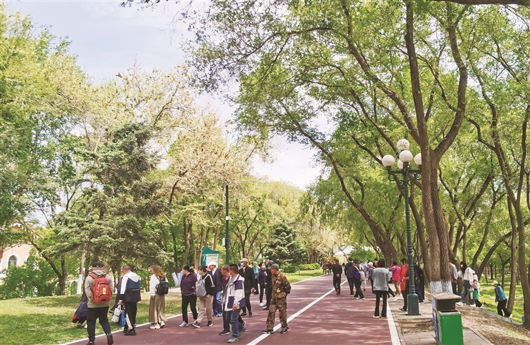 初夏时节,太阳岛风景区独具魅力,花香怡人。蒲公英盛开,核桃楸、云杉等植被绿意蓬勃,游客纷至沓来。