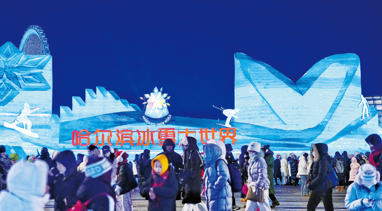 市民游客在哈尔滨冰雪大世界欢度新春。本报记者 蒋国红摄