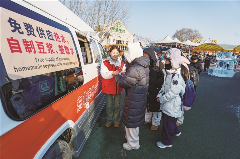 本报讯(记者董广硕)进入冰雪季以来,黑龙江东北虎林园为中外游客推出多项暖心举措,其中,为游客赠送的热豆浆和热姜糖水最受欢迎,每天都会有3000余名游客前来领取,并被夸赞为“萌虎送暖”。