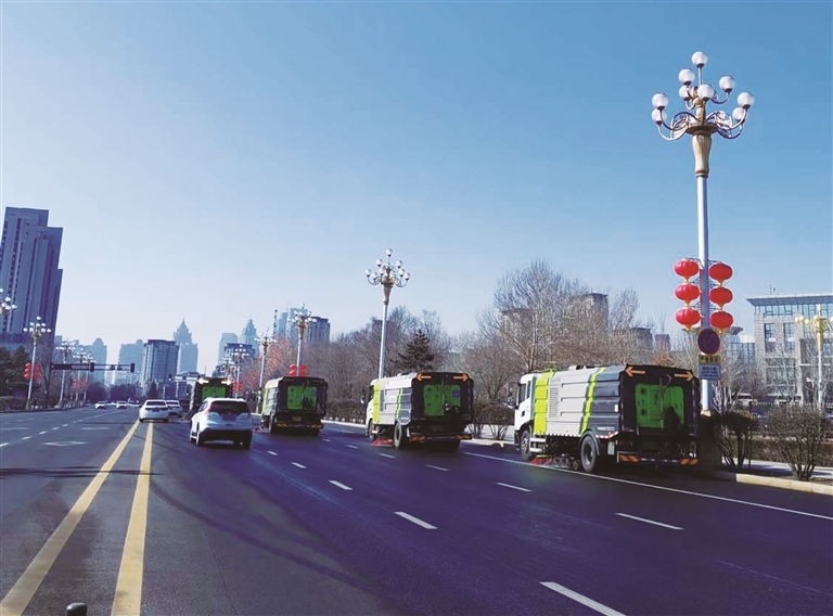 在机械化清扫作业中,松北区城管局充分挖掘机械作业的巨大潜能。在现场记者看到,为彻底清理道路上的污垢,各类专业清扫车辆有序排班,穿梭于大街小巷。多车联动、反复清扫的模式,充分发挥了机械作业的高效性与全面性,极大地提高了道路清扫的质量与效率,为城区道路的洁净提供了坚实有力的保障。