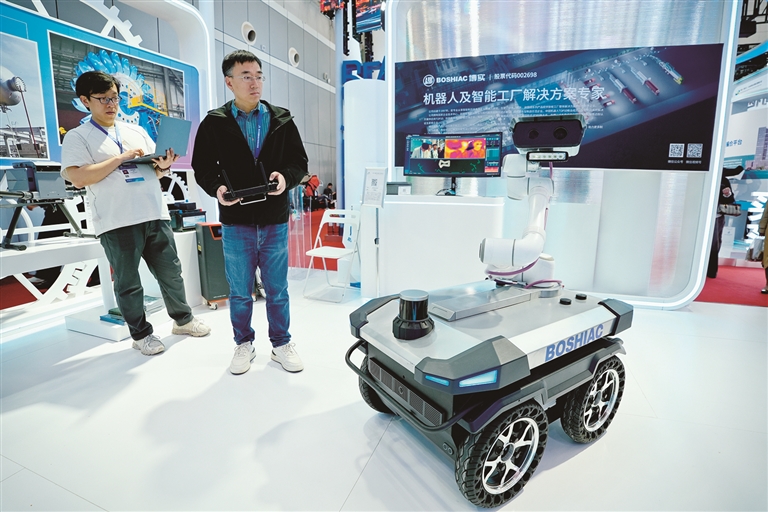 “我们已经多次参加哈洽会了,每次带来的展品都是当前最新产品。”博实股份博实研究院院长助理刘昊介绍,此次哈洽会上展出的两款智能巡检机器人可应用于电力、能源、石化、建筑等多行业中,在室内、车间、半开放厂房内以及室外、装置区、厂区内自动巡检;可以实现24小时不间断作业,不受疲劳、工作时间等因素限制,提高巡检效率,机器人能够按照预设的时间表和路线高频次巡检,覆盖所有关键设备和区域,确保无死角、无遗漏。