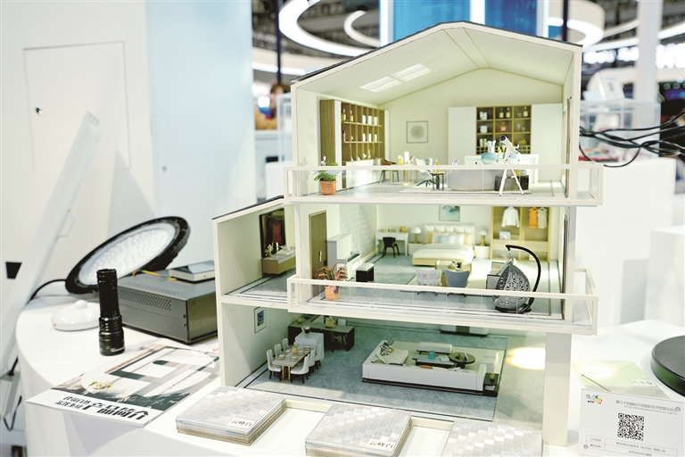 在荣仪尚科展位一栋微缩三层别墅沙盘模型前,荣仪尚科光电技术(哈尔滨)有限公司总经理助理谷婧琪总是耐心讲解。“这个沙盘一层采用的是普通玻璃,通过射灯高角度模拟太阳光照射情况。当太阳光通过玻璃照射到室内时,它只在窗口处形成一个光斑,不会进入到室内深处,所以室内深处仍处于灰暗状态。二层和三层采用了我们的自然采光帘,你能看到光线均匀地分布在室内每一个角落,非常明亮。”这款产品能将光线纵深提升10倍以上,亮度提升两倍以上,采光时间延长两小时左右。该款自然采光帘除省电外,还能起到健康护眼和隐私防护效果,并可阻隔红外辐射的热量,控制室内温度过快上升,减少空调使用时间,助力减排。该系统还适用于农业领域,通过优化光照,提升农作物和家畜的生长质量,谷婧琪说。