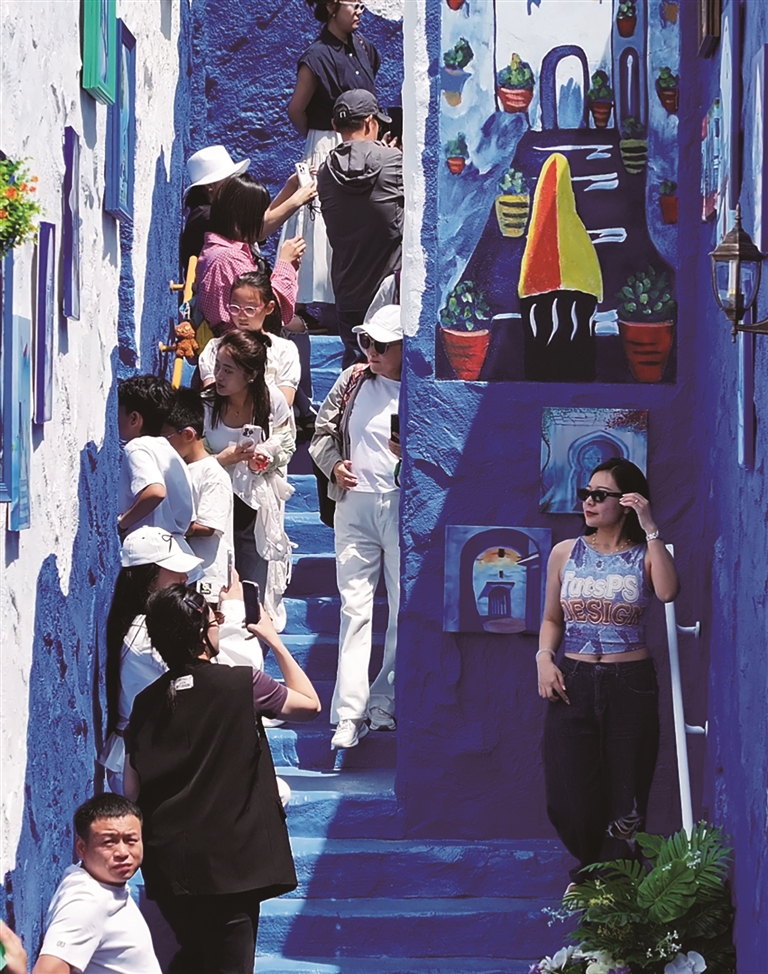 本报讯(记者董广硕)近日,哈尔滨极地公园打造的“摩洛哥蓝色小镇”刷屏全网,凭借“世界级景观复刻+沉浸式文化体验”成为今年“冰城夏都”的顶流爆款,以异域蓝调邂逅冰城旋律,喜迎“迷人哈夏”。这座按1:1比例还原摩洛哥舍夫沙万的“蓝色小镇”,将地中海浪漫风情完美融入冰城,助力哈尔滨迈向国际化旅游名城,掀起“不出国门游世界”的全民热潮。