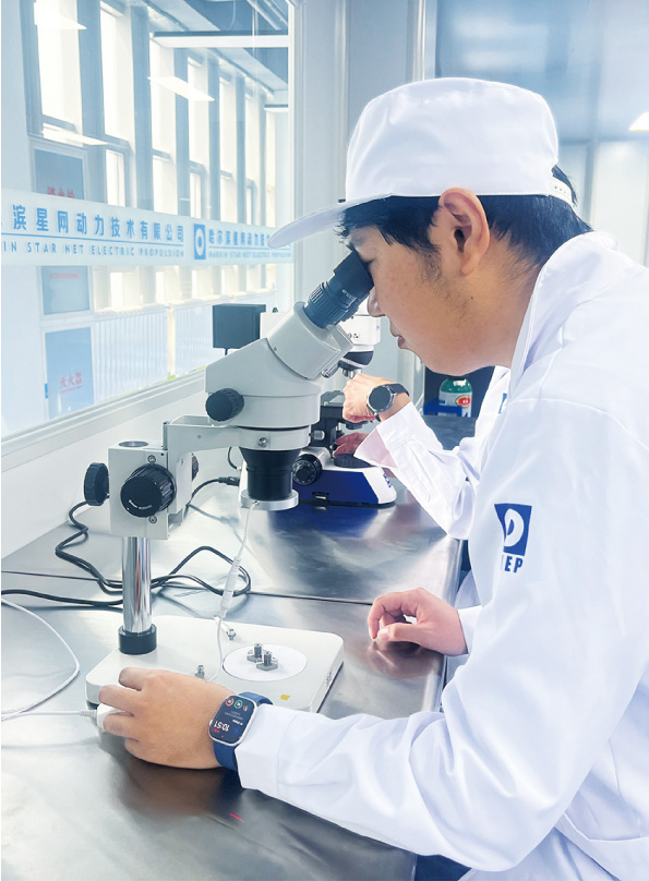 星网动力技术人员用显微镜检查零件焊缝。本报记者 薛婧摄