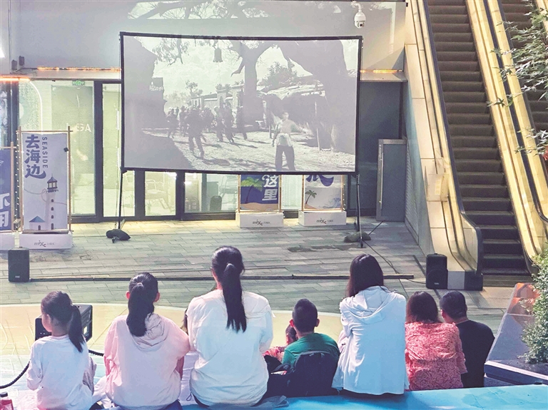 13日晚,夜幕降临,万象汇商场下沉广场上早早聚集了前来观影的群众,共同追忆峥嵘岁月,观影后纷纷表示,要珍惜来之不易的幸福生活,为美好的明天继续努力奋斗。