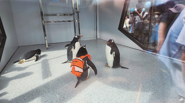 “孩子说这是‘会走路的小书包’,一大早就拽着我来等!”带着女儿排队的王女士笑着说。当企鹅“保姆车”幕布落下时,自带“明星范儿”的企鹅引起人群惊叹,大家纷纷举起手机记录珍贵瞬间,更有“企鹅小粉丝”特意背着同款书包、戴着毛绒手伴,只为和真企鹅来一场“同框合影”。