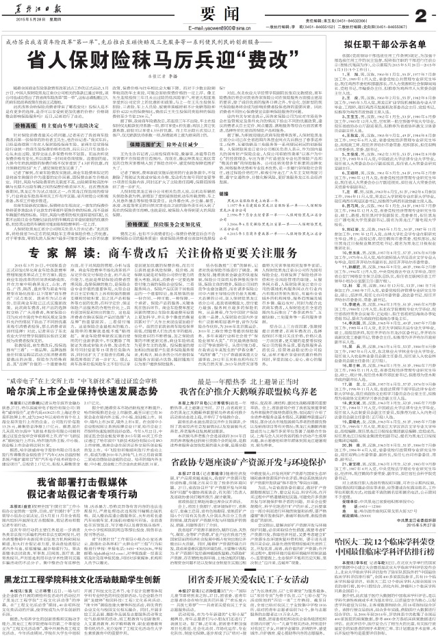 本报记者李播 随着全国商业车险条款费率改革试点工作的正式启动,5月27日,中国人保财险黑龙江省分公司相关的条款已通过审批,该公司也成功签出了我省商车险改革“第一单”,这标志着酝酿已久的商车险改革政策在我省正式落地。 此次改革会给保险消费者带来了哪些变化?投保人是不是有更多的选择,是否可以享受到更加优惠的价格?价格调整会影响保险服务吗?近日,记者进行了走访。 价格高低 将主要由车型与出险决定 针对保险消费者最关心的问题,记者采访了我省商车险费改后第一张保单的持有者王先生,他告诉记者:“我买车后,已经是连续第三年在人保财险投保商车险。前两年总觉得保险行业统一的商车险保费价格有些贵,而且自己开车也很小心从未出过险,觉得交这么多保费有些不划算。而这次听说保费价格有变化,所以就第一时间来咨询续保。没想到的是,人保今年给我测算的保费价格不仅享受到了4.3折的优惠,而且保障范围还扩大了,感觉保险更加实惠了。” 记者了解到,在商车险费改实施前,商业车险费率拟定的是将新车购置价作为重要的定价因素,即保费由新车价格决定。同时,风险与保险费率的关联度不高,出险频率较高的车辆与长期不出险车辆之间的保费价格差异不大。此次费改准备期间,黑龙江作为试点地区之一,在黑龙江保监局的指导下,行业商业车险改革相关工作有序实施,省内财险公司积极准备,各项工作稳步推进。 在商车险新政实施后,保费将由车型决定,一款车的保费价格将更多地取决于这款车的零部件更换价格的标准,而不是新车购置价格的标准。同时,风险与费率的相关度将更相匹配,长期不出险且安全驾驶记录良好的车辆将会享受到更低的优惠价格,而经常出险的车辆则可能面临保险费率的一定上浮。 人保财险黑龙江省分公司相关负责人告诉记者:“此次改革,将给我省70%左右的低风险车主带来保险价格上的优惠,对于零事故、零损失的人保客户最多可能享受到4~5折的优惠政策,保费价格与往年相比会大幅下降。而对于少数出险频率较高的车主来说,可能会面临保费价格的一定上浮。像王先生连续投保三年且未出过险的低风险客户,将更大程度地享受到公司定价上的优惠折扣政策,与上一年王先生投保车损险、三者险、车上人员险、玻璃单独破碎和不计免赔等险种原价4222元的保费相比,费改后王先生投保同类险种的保险费将至少节省2300元。” 据了解,我省商车险费改后,若连续三年不出险,车主在投保时仅无赔款优待系数一项,即可享受6折优惠;再加上其它优惠系数,最低可以享受4.335折优惠。而上年出险五次及以上客户,仅无赔款优待系数一项,保费就将上涨为原来的2倍。 保障范围扩大 除外责任减少 王先生告诉记者,以前投保商车险,像暴雪、冰雹等自然灾害都不在保险责任范围内。而现在,像这种黑龙江地区常见的自然灾害都纳入到了保险合同中,感觉保险保障范围扩大了。 记者了解到,费率新政实施后使用的行业新条款中,不仅删除了驾驶证失效或审验未合格、发动机车架号同时变更等15项责任免除内容,同时还扩大了主险责任范畴,保障范围得到了进一步扩大。 人保财险黑龙江省分公司相关负责人说,以机动车辆损失保险条款为例,新增加了受到被保险机动车所载货物、车上人员意外撞击等保险事故责任。此外像台风、沙尘暴、暴雪、冰凌、冰雹等常见的自然灾害也由之前的除外责任列入到了现在的保险责任范畴,也就是说,被保险人将得到更大的风险保障。 价格便宜 保险服务会更加优质 费改之后,也有不少消费者担心:保费价格便宜后会不会影响保险公司的服务质量?我省保险消费者应该如何选择投 保? 对此,东北农业大学经管学院副院长张启文教授说,商车险费改后将会对我省各家保险公司在保险服务方面提出更高的要求,除了诚信优质的服务口碑之外,专业化、创新型的现代保险服务将会成为影响消费者投保选择的重要因素。因此消费者不用担心保费便宜会影响保险服务的问题。 业内有关专家也表示,因各家保险公司为应对市场竞争会在监管规定及条件允许的情况下给出不同的优惠政策,建议消费者从自主定价、网点覆盖、落地服务等综合方面因素考虑,选择性价比更高的保险产品和服务。 据了解,为积极迎接此次商车险费率改革,人保财险黑龙江省分公司已在全省范围内各营业网点先后推出了春季送养生、i保养、互碰快赔及三免服务等一系列便民利民的创新服务。人保财险黑龙江省分公司相关负责人表示,作为国内最大的国有财产保险企业,人保公司将始终秉承“以客户为中心”的经营理念,专注为客户打造更加专业化的保险产品和“物美价廉”的保险服务。公司还将凭借多年积累的品牌优势、网络服务优势和专业技术优势,进一步履行好保险社会责任,通过保险价格杠杆,积极引导龙江广大车主文明驾驶习惯、遵守交通秩序、分散化解风险,更好地服务龙江社会经济发展。 链接 黑龙江省保险历史上的第一单: 1.1977年8月建国后黑龙江省保险第一单——人保财险黑龙江省分公司 2.1996年7月分业经营第一单——人保财险黑龙江省分公司 3.2006年6月交强险黑龙江省第一单——人保财险黑龙江省分公司 4.2015年5月商车费改第一单——人保财险黑龙江省分公司