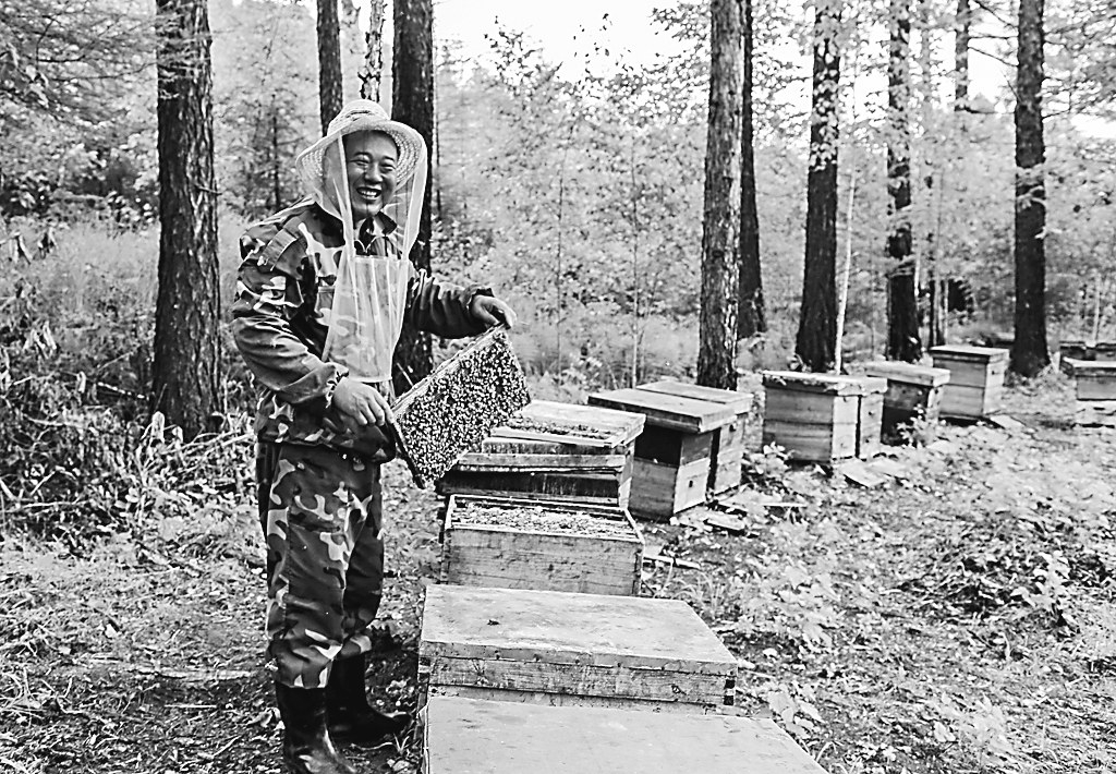 鹤北林业局庆林林场依托林区自然资源和林内资源优势,全力打造森林绿色食品、生态旅游、特色种植为龙头的支柱产业,加快产业转型升级。目前,森林藏香猪养殖规模700头,黑蜂养殖10户400箱,建农家乐山庄1个,冷水鱼养殖垂钓园水面4万平方米,草莓、葡萄、蔬菜大棚采摘生态园800平方米,有机大豆、玉米、红小豆、苏子、白瓜子等特色种植8400亩。林场采取政策扶持、资金贷款支持、场地场所优先提供等措施,鼓励大众创业万众创新,形成职工竞相创业、裂变发展、全民致富的新热潮。通过发展支柱产业,实现全场产值突破1000万元,户均年收入突破10万元目标。 白宝春摄影报道 黑蜂养殖户抑制不住收获的喜悦。 藏香猪野外放养基地。