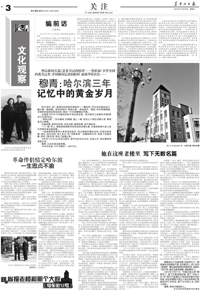 穆青:哈尔滨三年记忆中的黄金岁月