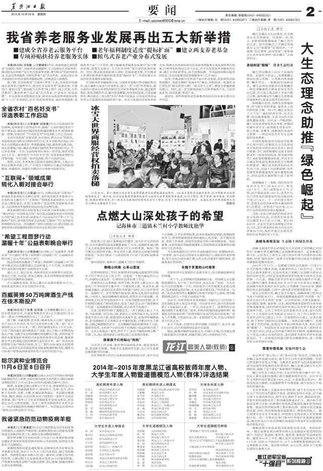2014年~2015年度黑龙江省高校教师年度人物、大学生年度人物暨道德模范人物(群体)评选结果