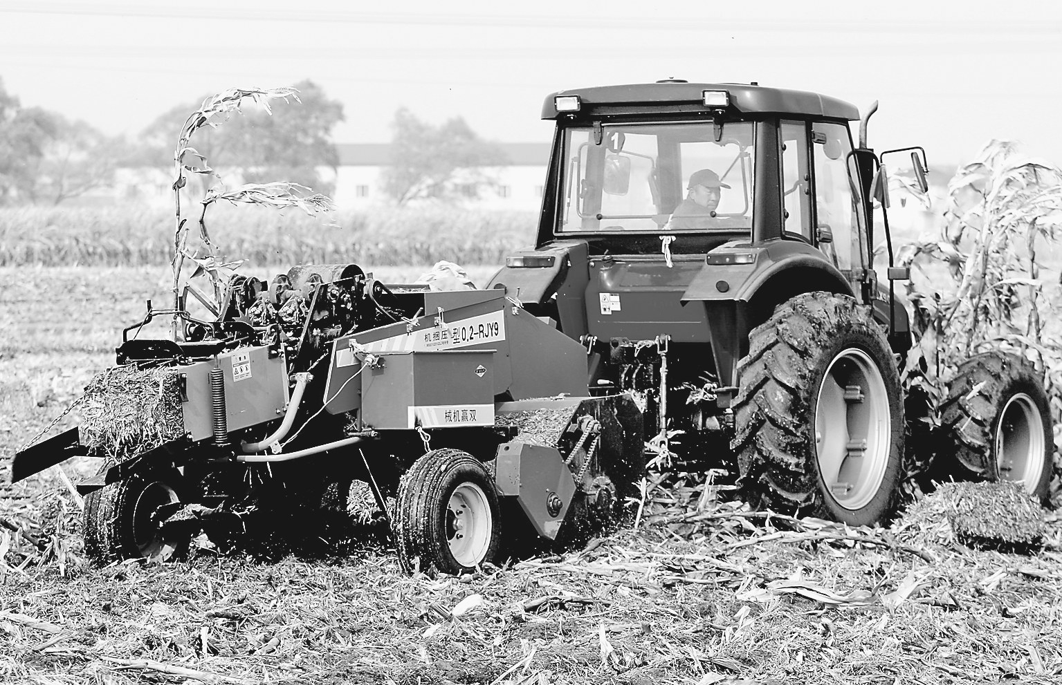 近日,在哈尔滨市南岗区红旗乡旭光村附近的农田里,一位农民正驾驶着大马力拖拉机牵引秸秆打包机将玉米秆收割打包。据了解,红旗乡3万多亩玉米地的秸秆全部打包只需要1个月的时间,打包后的秸秆有的用作养殖业饲料,有的制成秸秆煤供暖,实现变废为宝,也有效地解决了秸秆就地焚烧造成的空气污染难题。 本报记者苏强摄