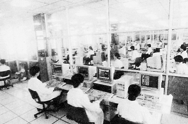 1991 年,《黑龙江日报》印刷设备已逐步现代化,激光照排车间使用微机敲字、排版。