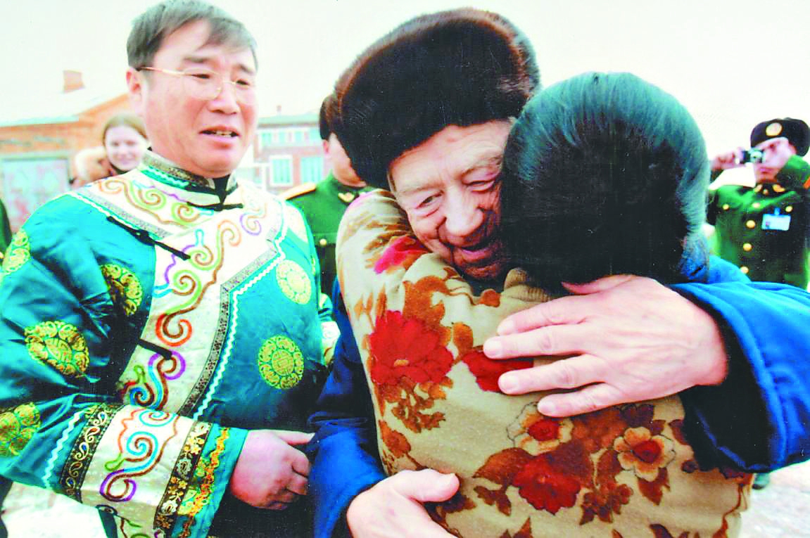 “感恩之旅”跨国报道中,记录俄罗斯老飞行员阿尔谢年科夫与我省同江县村民深情拥抱,阿尔谢年科夫当年救助过的中国男婴(左)如今已长大成人。