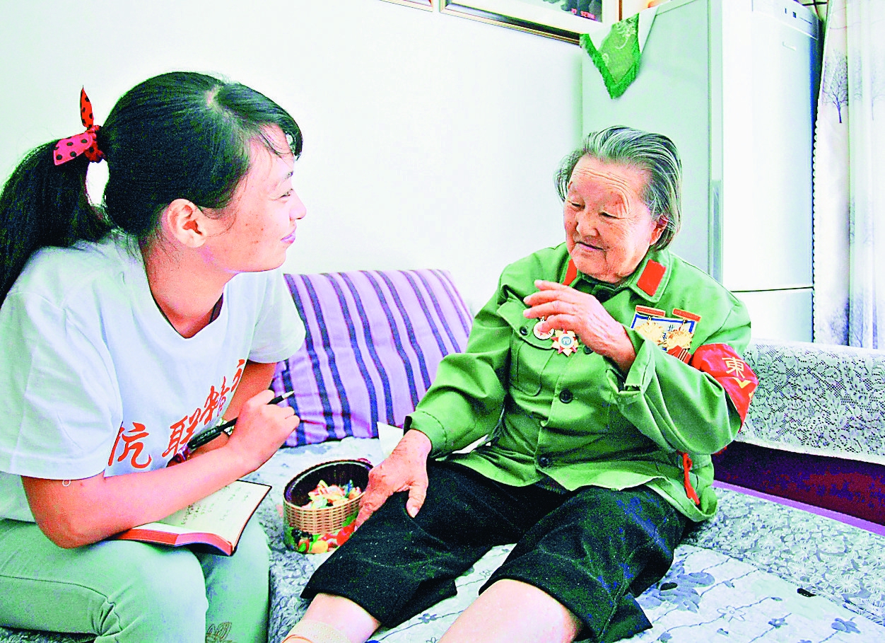 记者采访抗联老战士。