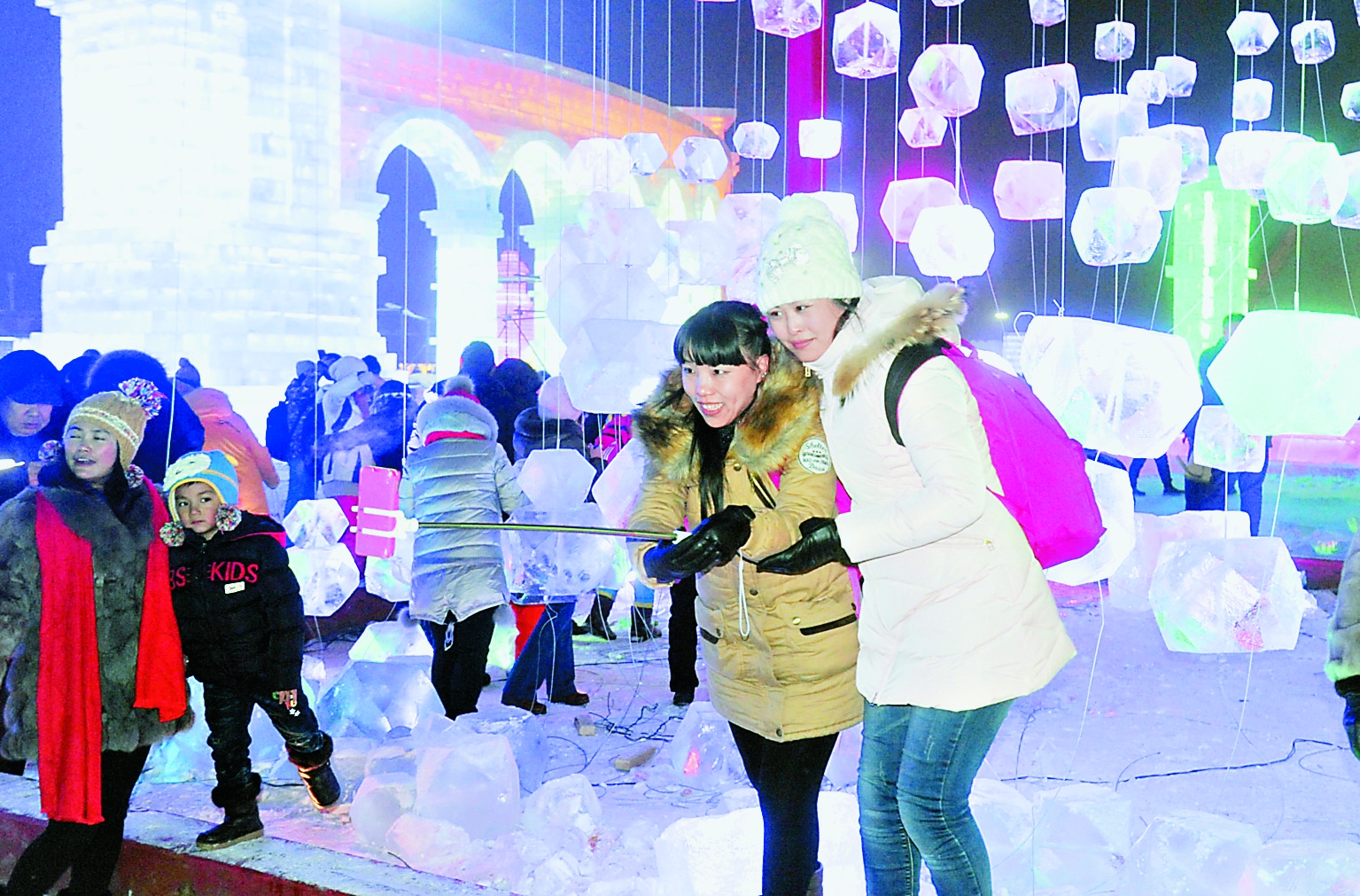 连日来,冰雪大世界吸引众多国内外游客来赏冰玩雪。31日,冰雪大世界跨年庆典活动将向游客送上新年祝福,营业时间将延长至0时30分。