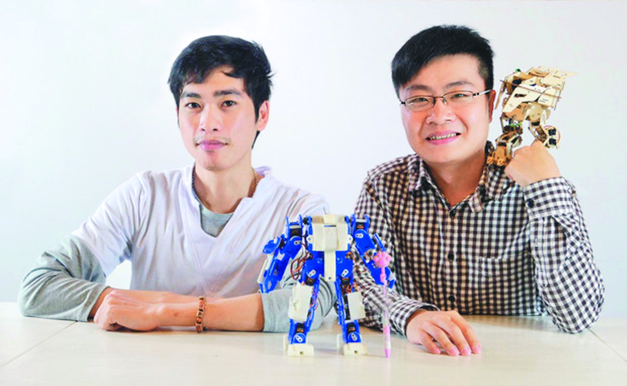 □本报记者韩雪摄影整理 2011年,参加第十一届“挑战杯”全国大学生课外学术科技作品竞赛的时候,我们都是大三学生,分别来自哈尔滨工程大学测控导航与系统专业和电器工程自动化专业,就是在这次比赛中,我俩一拍即合,决定开发开源机器人。 “挑战杯”之后,我们带领团队启动了Ai.Fr ame Rex版开发项目,这个机器人采用椴木层板和亚克力材料,由98个零件组成,并可以自定义5种颜色。 大学毕业后,与其他为工作奔波忙碌的毕业生不同,我们没有选择立即找工作,为了完成开发项目,我们选择在学校开放的实验室里驻扎一年。学校的良好环境让我们有机会再次接触更多比赛,甚至为在校生们提供指导,并和研究生同学一起旅游,生活相对轻松,还未感到生活的压力。最终,我们做出了升级版的Ai.Fr ame Apol l o,躯干包含109个零件,外壳12个零件,可配成24种颜色组合。分别拥有重装、机动和远程作战3种形态。 随着项目的渐入佳境,我们发现虽然学校提供了设备支持,但有一定的局限性:学校老师更倾向学术研究,离商业实践较远。于是,我们开始有了离开学校的念头。 上海,炎热的夏季里,满街五颜六色的短裙成为一道靓丽的都市风景,而此时,上海奉贤区里的我们却无暇顾及周围的一切,刚刚通过答辩后申请到了免费办公室,我们又匆匆忙忙地将3D打印机和微型机器人模型打包好,准备南下到更加炎热的深圳。 (下转第二版) 胡家祺(右)和孙泽波展示他们研发的机器人。