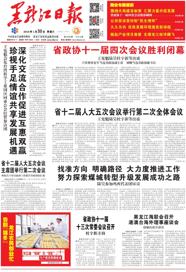 本报29日讯(记者郭铭华)圆满完成各项议程,中国人民政治协商会议黑龙江省第十一届委员会第四次会议29日上午在哈尔滨国际会议中心环球剧场胜利闭幕。会议选举于莎燕、张宪军为政协黑龙江省第十一届委员会副主席,刘刚为政协黑龙江省第十一届委员会秘书长。 9时30分,在省政协副主席宫晶堃的主持下,省政协十一届四次会议召开第二次全体会议。大会首先进行人事确认,因年龄关系,经中央批准,何小平、陶夏新、李继纯、郭晓华不再担任省政协副主席职务;根据工作需要,省政协副主席、党组副书记赵克非不再兼任省政协秘书长职务。并进行大会选举,选举政协黑龙江省第十一届委员会副主席、秘书长,补选政协黑龙江省第十一届委员会常务委员会委员。选举前,会议通过选举办法、总监票人和监票人名单。 随后,大会举行2015年度“政协工作创新奖”颁奖仪式。赵克非宣读《政协黑龙江省委员会关于对黑龙江省2015年度“政协工作创新奖”获奖单位进行表彰奖励的决定》,望奎县政协荣获一等奖;黑河市政协、佳木斯市政协、牡丹江市政协荣获二等奖;五常市政协、鸡西市政协、大庆市政协和市民进荣获三等奖;鹤岗市政协、密山市政协、农工党省委、七台河市桃山区政协、林甸县政协、富裕县工商联、民盟北安市委、绥化市政协、大兴安岭地区政协、绥芬河市政协、宝清县政协等11个单位荣获提名奖。 大会还对优秀提案和2015年度履职优秀委员进行了表彰。 11时,大会举行闭幕式。闭幕式由省政协副主席杜吉明主持。 省政协主席杜宇新,省政协副主席赵克非、程幼东、洪袁舒、赵雨森、宫晶堃,省政协十一届委员会原副主席何小平、陶夏新、李继纯、郭晓华出席会议并在主席台前排就座。 省领导王宪魁、陆昊、陈润儿、黄建盛、张效廉、杨汭、陈海波、杨东奇、郝会龙、赵敏、李海涛、李雷、符凤春、陈述涛、胡世英、庞义华、朱清文、孙尧、吕维峰、孙永波、孙东生、胡亚枫、于莎燕,省军区政委王炳跃,省法院代院长石时态,省检察院检察长徐明,哈尔滨市政协主席姜国文,省级离退休老同志孙维本、宋法棠、王巨禄、周文华、马国良,以及往届省政协领导王迺谦、李延芝出席会议并在主席台就座。 大会总监票人宣布计票结果,杜吉明宣布选举结果:于莎燕、张宪军当选为政协黑龙江省第十一届委员会副主席;刘刚当选为政协黑龙江省第十一届委员会秘书长;王幼平、刘文东、李大忠、李晓东、范峰、赵德信、高金芳当选为政协黑龙江省第十一届委员会常务委员会委员。 程幼东作政协黑龙江省第十一届委员会第四次会议关于提案情况的报告。 大会通过了政协黑龙江省第十一届委员会第四次会议决议。 会议指出,政协黑龙江省第十一届委员会第四次会议,在各位委员的共同努力下圆满地完成了各项议程。会议期间,各位委员以饱满的热情和高度的政治责任感,围绕省委、省政府中心工作积极建言献策、履职尽责,会议达到了预期目的,取得了圆满成功。 会议号召,全省各级政协组织、政协各参加单位和广大政协委员,要在中共黑龙江省委的领导下,发挥优势,积极进取,奋发有为,扎实工作,为夺取我省全面建成小康社会决战决胜作出新的贡献。 11时30分,大会在雄壮的国歌声中闭幕。