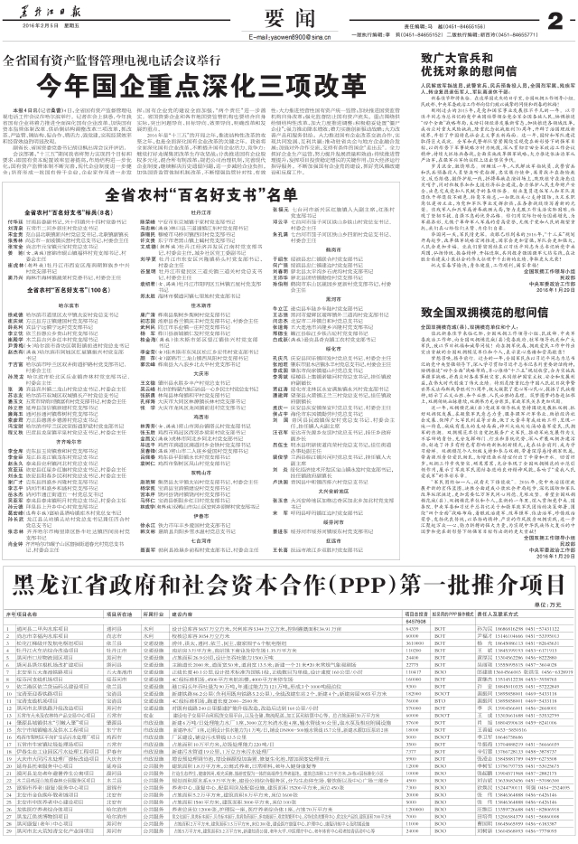 全省农村“百名好支书”标兵(8名) 付华廷甘南县委副书记,兴十四镇兴十四村党委书记 刘清泉五常市二河乡新庄村党总支书记 宋金贵克山县北联镇新兴村党总支书记,北联镇副镇长 张秀林尚志市一面坡镇长营村党总支书记、村委会主任 张宝金尚志市元宝镇元宝村党总支书记 姜 驰(女、满族)富锦市砚山镇福祥村党支部书记、村委会主任 崔虎林(朝鲜族)牡丹江市西安区海南朝鲜族乡中兴村党支部书记 窦乃兴海林市海林镇蔬菜村党委书记、村委会主任 全省农村“百名好支书”(100名) 哈尔滨市徐成德哈尔滨市道里区太平镇太安村党总支书记崔庆斌方正县方正镇建国村党支部书记薛兆利宾县宁远镇宁远村党支部书记李立忱依兰县愚公乡贵山村党支部书记崔殿学木兰县吉兴乡红丰村党支部书记 尹秀梅(女)哈尔滨市香坊区朝阳镇前进村党总支书记赵杰有(满族)哈尔滨市阿城区红星镇振兴村党支部 书记 于吉富哈尔滨市呼兰区双井街道护路村党支部书记、村委会主任 孙茂龙哈尔滨市松北区乐业镇杏林村党支部书记、村委会主任 张 涛宾县宾州镇二龙山村党总支书记、村委会主任苏志友哈尔滨市双城区双城镇长产村党总支书记 潘玉文五常市背荫河镇富有村党支部书记、村委会主任孙立臣延寿县加信镇新建村党支部书记廉海玉通河县通河镇桦树村党支部书记索彦君方正县德善乡德善村党总支书记冯宝财哈尔滨市呼兰区沈家街道罗斌村党支部书记程义秋巴彦县龙泉镇平泉村党总支书记、村委会主任 齐齐哈尔市 李金库克东县玉岗镇春和村党支部书记李金臣龙江县龙江镇龙东村党总支书记赵永久泰来县克利镇河北村党总支书记 宫亚廷依安县红星乡红旗村党总支书记、村委会主任刘永生依安县阳春乡民利村党总支书记、村委会主任谢广才克东县昌盛乡兴隆村党支部书记李志平讷河市和盛乡和盛村党支部书记 岳永杰讷河市通江街道五一村党总支书记 吴亚军泰来县泰来镇明月村党总支书记、村委会主任孙云德拜泉县上升乡中心村党支部书记 葛宏峰(达斡尔族)富裕县塔哈镇库木村党总支书记 孙长武龙江县头站镇头站村党总支书记兼任四合村党总支书记 张忠林齐齐哈尔市梅里斯区卧牛吐达镇四间房村党支部书记 肖金钟齐齐哈尔市碾子山区富强街道春光村党总支书 记、村委会主任 牡丹江市 陈荣峰宁安市东京城镇于家村党支部书记 马忠林(满族)林口县三道通镇江东村党支部书记 薛锡民穆棱市马桥河镇西河村党支部书记 许文贵东宁市老黑山镇上碱村党支部书记 文成德(朝鲜族)牡丹江经济开发区江南村党支部书记、村委会主任,城乡社区党工委副书记 刘学更牡丹江市东安区兴隆镇桥头村党支部书记、村委会主任 谷显明牡丹江市爱民区三道关镇三道关村党总支书记、村委会主任 袁绍君(女、满族)牡丹江市阳明区五林镇五星村党支部书记 郑太胜海林市横道河镇七里地村党支部书记 佳木斯市 康广清桦南县梨树乡梨树村党支部书记 初志国汤原县香兰镇庆丰村党支部书记、村委会主任 武利民同江市乐业镇一庄村党支部书记 杨 军桦川县新城镇仁发村党支部书记 桂金海(满族)佳木斯市郊区望江镇佳兴村党支部书记 李金荣(女)佳木斯市东风区松江乡宏伟村党支部书记 颜 萍(女)富锦市二龙山镇西凤阳村党支部书记 郭云峰桦南县大八浪乡北太平村党支部书记 大庆市 王文德肇州县永胜乡丰产村党总支书记 吴云峰杜尔伯特蒙古族自治县一心乡民主村党总支书记张新勇林甸县林甸镇和平村党支部书记 孔祥海大庆市大同区林源镇长林村党支部书记 张 学大庆市龙凤区龙凤镇前进村党支部书记 鸡西市 林秀芳(女、满族)密山市黑台镇塔头村党支部书记张玉胜鸡西市鸡冠区西郊乡梁家村党支部书记 金昌义(满族)虎林市阿北乡阿北村党支部书记 毕远平鸡西市滴道区滴道河乡金铁村党支部书记吴春锋(满族)密山市二人班乡爱国村党支部书记吕佩春鸡东县平阳镇永长村党支部书记 袁树仁鸡西市梨树区凤山村党支部书记 双鸭山市 赵艳辉集贤县太平镇太岩村党支部书记、村委会主任杨学凯宝清县宝清镇建设村党支部书记 宫本序饶河县饶河镇饶河村党支部书记 马怀仁宝清县朝阳乡红日村党支部书记 林成学(朝鲜族)双鸭山市尖山区安邦乡原鲜村党支部书记 伊春市 徐永江铁力市年丰乡爱国村党支部书记韩文彬嘉荫县向阳乡雪水温村党总支书记 七台河市 聂喜军勃利县抢垦乡前程村党支部书记、村委会主任 张福元七台河市新兴区红旗镇人大副主席,红胜村党支部书记 邓云平七台河市茄子河区铁山乡铁山村党总支书记、村委会主任 朱孔满七台河市茄子河区铁山乡四新村党总支书记、村委会主任 鹤岗市 于绍东绥滨县忠仁镇联合村党支部书记 何广强绥滨县忠仁镇建边村党支部书记 刘春明萝北县太平沟乡石虎沟村党支部书记 王沛华萝北县团结镇勤俭村党支部书记 孙伯刚鹤岗市东山区蔬园乡更新村党支部书记、村委会主任 黑河市 牛立江逊克县车陆乡车陆村党支部书记 王志强黑河市爱辉区瑷珲镇外三道沟村党支部书记闫忠杰北安市二井镇自和村党总支书记 张道海五大连池市兴隆乡兴隆村党支部书记 邢德生嫩江县临江乡铁古砬村党支部书记 白成跃(满族)逊克县奇克镇工农村党支部书记 绥化市 孔庆凡庆安县同乐镇同发村党总支书记、村委