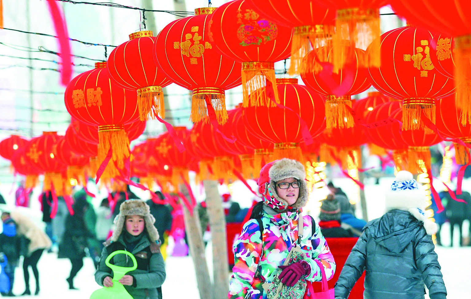 正月十五到来,哈尔滨市一些冰雪景区内纷纷挂起红红的灯笼和谜语。猜对谜底者可获得相应的奖品,游客们一边赏冰玩雪,一边观灯猜谜,兴致盎然。 本报记者苏强摄