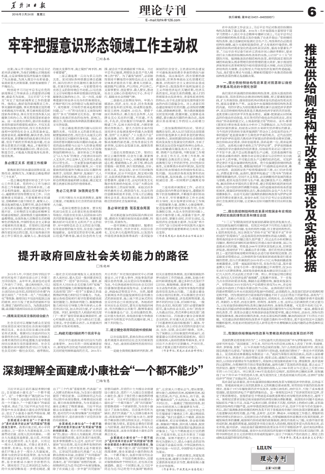 □杨智慧 习近平同志日前在基层考察时提出,全面建成小康社会“一个都不能少”。这“一个都不能少”既包括56个民族一个不能少,也包括全体社会个体成员一个不能少。“一个都不能少”的承诺与要求,表达了以习近平同志为总书记的党中央全面建成小康社会的坚强意志,设立了小康是小康的严格标准,赋予党的为人民服务宗旨的新内涵。 全面建成小康社会“一个都不能少”是对改革开放以来“共同富裕”思想的强力坚守。改革开放之初,邓小平同志提出,让一部分人先富裕起来,让先富带动后富,实现人民共同富裕。一部分人先富起来是探索,是示范,共同富裕才是远期目的、长久追求。只有让一部分人先富起来,才能让更多的人有榜样、有奔头、有追求、有实践。但我们不能止步于一部分人先富起来,那样与党的宗旨相违背的,也与先富带后富设计相违背的。共同富裕的思想,是全面建成小康社会思想的先声。期间经历了以江泽民同志为核心的中央领导集体进一步理论阐述,提出了“三个代表”重要思想,代表最广大人民群众的根本利益,为全面小康思想提供了理论前奏。以胡锦涛同志为总书记的中央领导集体,不断推进民生建设,着力扶持弱势群体,为全面建成小康社会奠定了物质基础。习近平同志提出全面建成小康一个都不能少的思想,是对历代中央领导集体“共同富裕”思想的坚守,是在新形势下对党的宗旨的有效继承。 全面建成小康社会“一个都不能少”是对改革开放以来“共同富裕”思想的创新发展。邓小平同志提出“共同富裕”的,提出一部分人先富起来,用先富带动后富的思想,是在改革开放初期,很多事情摸着石头过河,没有对“共同富裕”划出范围,是历史条件限制的结果,但理论上的开创意义是不能低估的。江泽民同志提出代表最广大人民群众的根本利益,注意到了“共同富裕”的范围视角,使“共同富裕”思想进一步具体化,是“共同富裕”思想的发展。以胡锦涛同志为总书记的中央领导集体,除了在实践上进一步丰富“共同富裕”思想内涵外,在党的十七大提出全面建设小康社会,党的十八大提出全面建成小康社会,提升了我们党小康思想的理论水平。习近平同志提出全面建成小康社会“一个都不能少”,把“共同富裕”思想推进到一个崭新阶段,为全面小康设计了具体化指标。历史条件有所欠缺时,我们代表最广大人民群众根本利益;改革发展给予我们强大动力,就要给予剩余部分群众特别关注,不仅标志着我们能力增长,更是标志着我们思想上与时俱进,我们的目标是让所有人民都富裕起来,这是全面建成小康社会的真正含义。 全面建成小康社会“一个都不能少”是对改革开放以来“共同富裕”思想和全面建成小康社会思想的具体化、指标化。一个都不能少,使“共同富裕”的范围清晰,使全面建成小康的指标具体。一个都不能少,包括中国当代社会的全体人民。不仅没有剩余部分,还要对弱势群体给予特别关注,走包容式发展道路。最近一个时期以来,以习近平同志为总书记的党中央强调“精准扶贫”,让贫困人口增长志气,增长智慧,增长能力;脱物质贫困,脱精神贫困,脱能力贫困;有产业,有奔头,有干劲。强调“精准扶贫”,中央的决心、魄力、举措不同以往。一是确定了脱贫时间表,到2020年把贫困人口数量降至为零。二是明确了脱贫考核指标,习近平同志当年在福建省宁德地区工作,提出精准扶贫问题:“我们注重抓六个精准,即扶持对象精准、项目安排精准、资金使用精准、措施到户精准、因村派人精准、脱贫成效精准,确保各项政策好处落到扶贫对象身上。”这六个精准是实打实的措施,不是放空炮,实实在在抓住了问题的关键。如果不能把几千万贫困人口转化为富裕人口,那么小康社会的宏伟目标就不会最后实现,中华民族的伟大复兴也是一句空话,中国梦也不会转化为现实。 我们要进一步抓好落实,深度促进包容性发展,既要只争朝夕全力推动,又要抓铁有痕步步为营,精准绘制小康社会宏伟蓝图。 (作者单位:中共黑龙江省委党校)