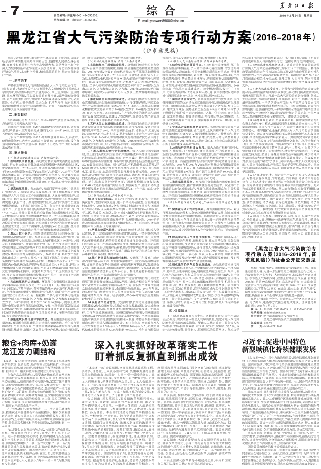 黑龙江省大气污染防治专项行动方案(2016-2018年)