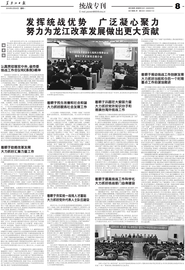 发挥统战优势 广泛凝心聚力努力为龙江改革发展做出更大贡献