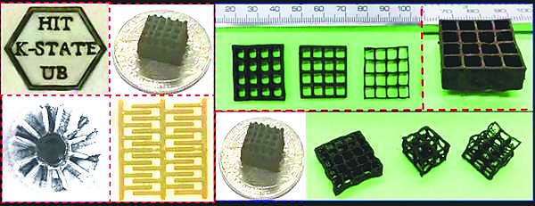 本报讯(商艳凯记者衣春翔)提到3D打印技术,大家并不陌生。日前,记者从哈尔滨工业大学得知,该校土木学院教授李惠课题组成员张强强等人以及美国部分大学研究者利用3D打印技术制备出世界上最轻的材料——超轻石墨烯气凝胶。该材料具有复杂微观结构,密度低至每立方米0.5千克,大致相当于常规环境中大米密度(约每立方米800千克)的1/ 1600,不到空气密度(约每立方米1.2千克)的1/2。 近年来,3D打印行业发展迅速,其中一个比较引人注目的领域就是石墨烯材料在3D打印中的应用。张强强等研究人员经反复试验,在国际上首次实现了具有悬空复杂拓扑纯三维石墨烯结构可剪裁设计。通俗地说,就是利用石墨烯氧化物与水的混合物作为“墨水”,通过滴落的方式,在-25℃的温度下将其3D打印到一个表面上。这样每打印出来的一层都会被冰冻住,然后在冰的支持下再打印下一层,从而构建由冰作为悬空空间“支架”的三维气凝胶结构。研究人员称,通过这一方法制备出的石墨烯材料,在多功能材料、柔性电子器件、储能单元、传感器件、生物化学催化载体、超级电容器等领域具有广阔的应用前景。 3D打印出的超轻材料。 资料片