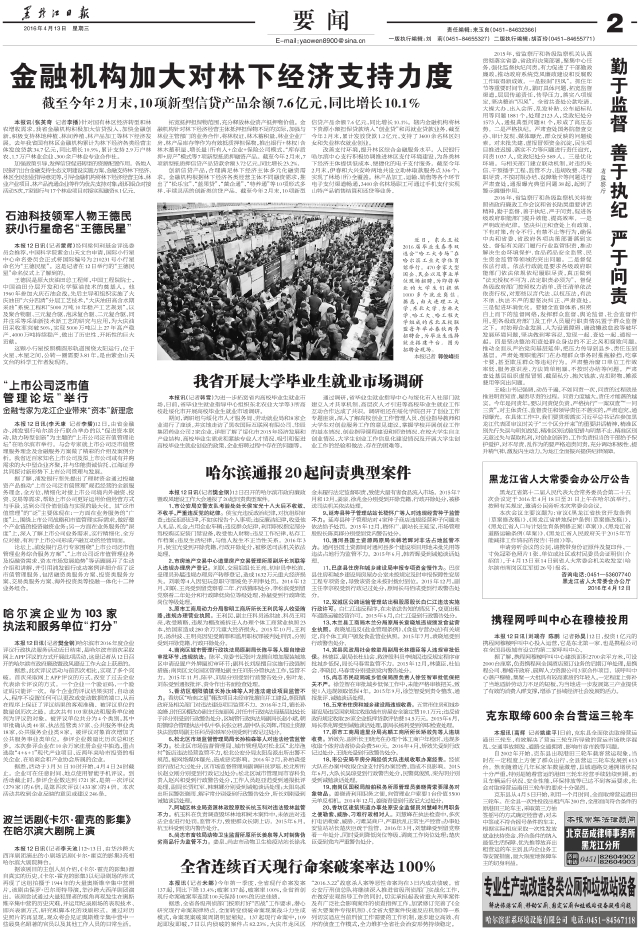 本报12日讯(记者樊金钢)12日召开的哈尔滨市政府廉政暨政风建设工作大会通报了20起问责典型案件。 1、市公安局交警支队考验处处长侯宝光十八大后不收敛、不收手,严重违反党的纪律。侯宝光违反政治纪律,对抗组织审查;违反组织纪律,不如实报告个人事项;违反廉洁纪律,收受他人礼品、礼金,占用企业车辆;违反群众纪律,利用职权指定部分驾校购买安装门禁设备,收受他人财物;违反工作纪律,私存工作档案;违反生活纪律,与他人发生不正当性关系。2016年3月,侯宝光受到开除党籍、行政开除处分,被移送司法机关依法处理。 2、市房地产交易中心道里房产交易管理所原副所长刘联等人违规办理房产登记。刘联、交易组组长王亮、初审员李松滨、受理员孙艋违规办理房产转移登记,造成1632万元重大经济损失。刘联等4人因犯玩忽职守罪被免予刑事处罚。2014年12月,刘联、王亮受到留党察看二年、行政撤职处分,李松滨受到留党察看二年处分和行政降低岗位等级处理,孙艋受到行政降低岗位等级处理。 3、原市工商局动力分局黎明工商所所长王利民等人收受贿赂,违规办理营业执照。王利民、副主任科员汤洪波、科员王明亮,收受贿赂,违规为棚改被拆迁人办理个体工商营业执照23本,给国家造成280余万元重大经济损失。2015年10月,王利民、汤洪波、王明亮因犯受贿罪和滥用职权罪被判处刑罚,分别受到开除党籍、行政开除处分。 4、南岗区城市管理行政执法局原副局长陈平等人擅自增设审批环节、违规执法。陈平、党委书记张叶龙擅自增加服装城地区申请设置户外牌匾初审环节;副科长刘磊擅自实施行政强制措施;南岗区文化园区管理处副主任刘东分管执法工作,监管不力。2015年11月,陈平、刘磊分别受到行政警告处分,张叶龙、刘东受到通报批评、责令作出书面检查处理。 5、香坊区朝阳镇镇长孙汝峰等人对违法建设项目监管不力。香坊区“哈南之星”棚改项目未经审批擅自开工建设,朝阳镇政府及相关部门对违法建设项目监管不力。2016年2月,镇长孙汝峰、时任区棚改办副主任庞丽英、时任市行政执法局基层处处长于洋分别受到行政警告处分,区城管行政执法局副局长赵小斌,朝阳镇综合管理执法中队中队长张立君、副中队长刘辉,市国土资源执法监察局副主任科员张铁军分别受到行政记过处分。 6、松北区市场监督管理局局长孙柏森等人对违法经营监管不力。松北区市场监督管理局、城市管理局对松北区“北岸渔村”饭店违法经营监管不力,松北公安分局太阳岛派出所出警不规范,被网络媒体曝光,造成恶劣影响。2016年2月,孙柏森受到行政记大过处分,区市场监督管理局副调研员罗瑶、松北所所长赵立刚分别受到行政记过处分;松北区城市管理局市容科负责人赵兴和受到行政警告处分,工作人员赵亚范受到通报批评处理,副局长贾红军、韩琳娜分别受到诫勉谈话处理;太阳岛派出所民警张晓雨、解宇常分别受到行政警告处分,所长刘刚受到诫勉谈话处理。 7、阿城区林业局资源林政股原股长杭玉科对违法毁林监管不力。杭玉科在负责调查毁坏林地和树木案件中,未依法对违法企业进行处罚,监管不力,致使群众长期上访。2015年6月,杭玉科受到党内警告处分。 8、尚志市畜牧局动物卫生监督所原所长姜泉等人对制售伪劣商品行为监管不力。姜泉、尚志市动物卫生检疫站站长徐兆金未履行法定监督职责,致使大量有害食品流入市场。2015年7月和12月,姜泉、徐兆金分别受到开除党籍、行政开除处分,被移送司法机关依法处理。 9、延寿县种子管理站站长嵇怀广等人对违规经营种子监管不力。延寿县种子管理站对4家种子商店违规经营种子问题未依法给予处罚。2015年12月,嵇怀广、副站长王延宝、市场管理股股长陈英群分别受到党内警告处分。 10、通河县国土资源局原局长韩若晖对非法占地监管不力。通河县国土资源局对通河县多个建设项目用地未批先用等违法占地行为监管不力。2015年6月,韩若晖受到诫勉谈话处理。 11、巴彦县住房和城乡建设局申报专项资金慢作为。巴彦县住房和城乡建设局房屋办公室未按规定及时申报保障性安居工程专项资金,导致该资金未按时拨付到位。2015年12月,副主任李宗权受到行政记过处分,原局长马佰成受到行政警告处分。 12、双城区公路运输管理站出租股原股长白仁江违法实施行政许可。白仁江违反程序,在未依法告知的情况下,变更出租车道路运输经营许可。2015年6月,白仁江受到行政警告处分。 13、木兰县工商局木兰分局原局长袁晓旭违规颁发食盐营业执照。袁晓旭违反《盐业管理条例》、《食盐专营办法》有关规定,向个体工商户颁发食盐营业执照。2015年7月,袁晓旭受到行政警告处分。 14、宾县民政局社会救助局副局长林德臣等人违规审批低保。林德臣、副局长杜仙会、救济股科员李晓民违反规定程序审批城乡低保,局长马春雪监管不力。2015年12月,林德臣、杜仙会、李晓民、马春雪分别受到党内警告处分。 15、尚志市民政局城乡低保局原负责人徐笠智审批低保把关不严。徐笠智在审批城乡低保工作中,未能严格审核把关,致使1人违规领取低保4年。2015年9月,徐笠智受到责令整改、通报批评、诫勉谈话处理。 16、五常市住房和城乡建设局违规收费。五常市住房和城乡建设局违反国家规定收取城市房屋安