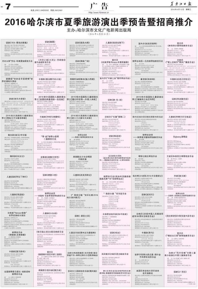 2016哈尔滨市夏季旅游演出季预告暨招商推介