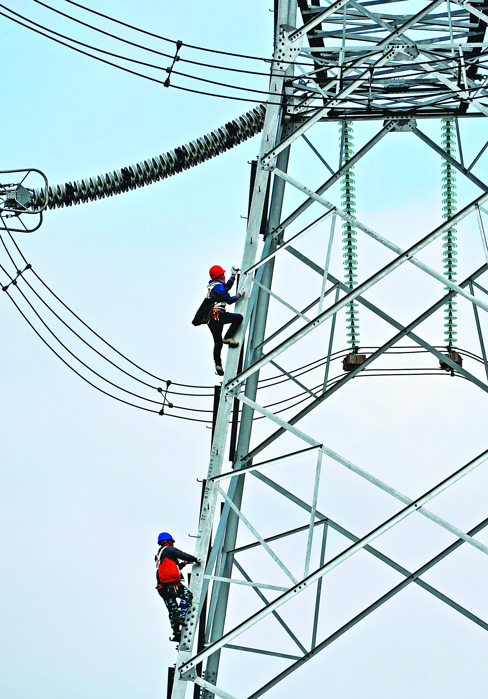 近日,标志国家电网公司黑龙江500千伏黑河换流站2016年度检修正式拉开序幕,预计检修分两个阶段进行,今年6月底前全部完成。 目前,国网黑电自2012年始通过俄罗斯500千伏阿穆尔变电站至中国黑河500千伏换流站,累计完成对俄购电83.617亿千瓦时,相当于节约标准煤280余万吨,减少二氧化碳排放790余万吨。 据悉,该换流站是目前国家电网公司第一个跨国能源合作项目,也是从境外购电电压等级最高、容量最大的输变电工程,计划今年由俄罗斯向中国输送电量23亿千瓦时。图为电力战线的“蜘蛛侠”们在专心检修。 岳宏巍本报记者邵国良摄