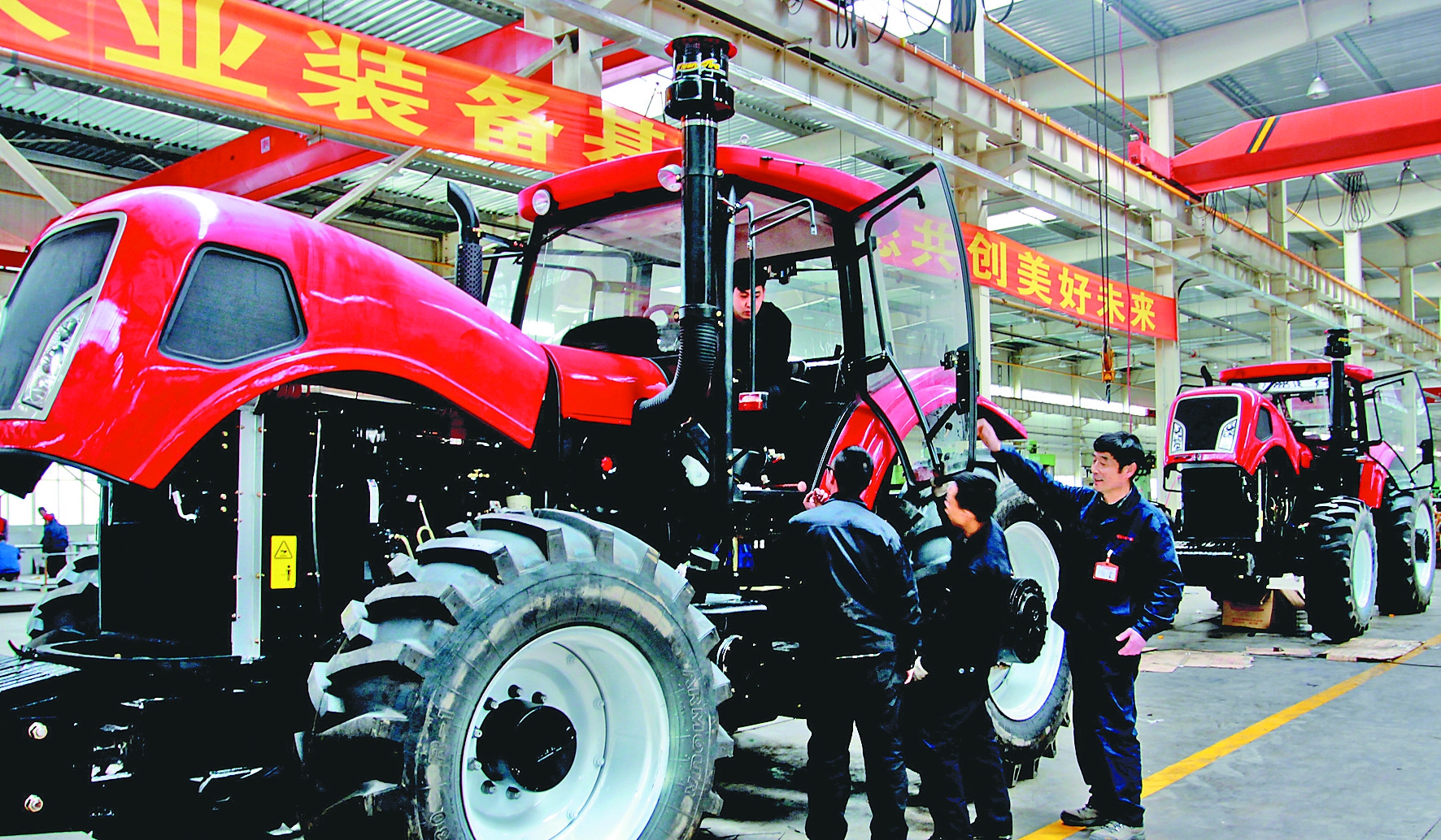 近日,一拖(黑龙江)东方红工业园有限公司新研发的大马力全架式拖拉机即将下线。这款新研发的拖拉机具有马力大、牵引力强等特点,集犁、耙、旋耕等功能于一身,满足了许多农民一机多用的需求。 闫美艳本报记者邵国良摄