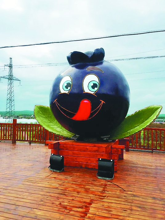 蓝莓产业园前可爱的蓝莓卡通形象。本报记者桑蕾摄