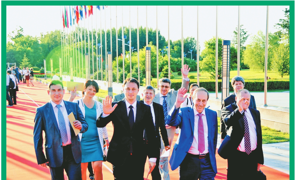14日晚,第四届中国国际新材料产业博览会和第二十七届哈尔滨国际经济贸易洽谈会招待酒会在太阳岛宾馆国际交流平台举行,来自国内外嘉宾欢聚一堂共话商机,拉开了两大展会的序幕。图为中外嘉宾步入会场。 本报记者邵国良摄