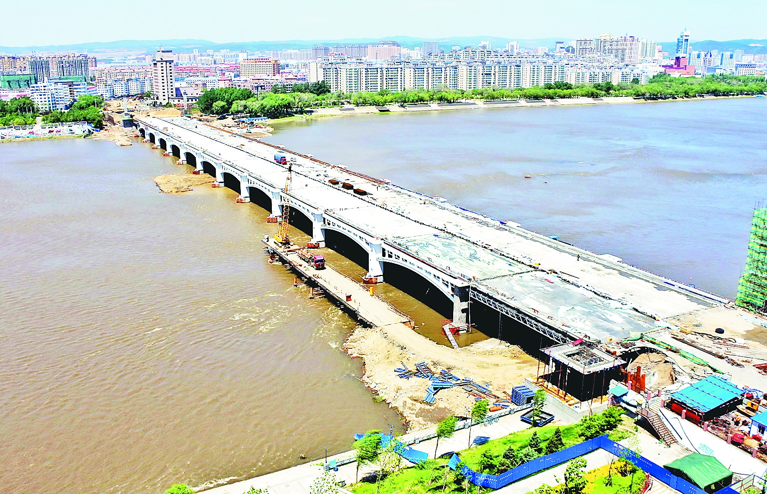 目前,牡丹江大桥拓宽改造工程历经建设者10个多月紧张建设,工程已经完成85%,预计8月中旬可完工并通车。该桥始建于1984年,是连接牡市江南江北的枢纽,改造后将形成双向八车道通行能力,届时对牡丹江实现“一江居中,两岸同行”具有重要意义。 图为改建中的牡丹江大桥。 张春祥 本报记者邵国良摄