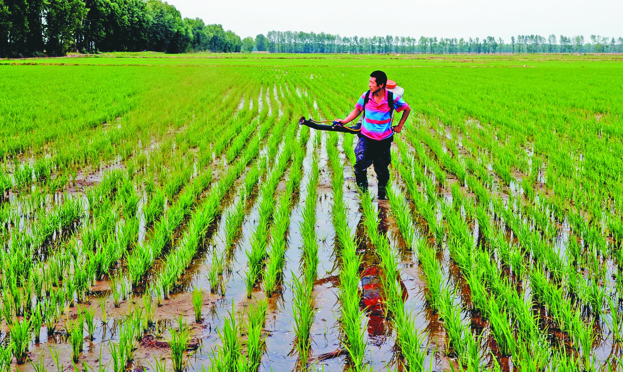 近日,北大荒股份江滨分公司为排除连日低温多雨造成的水稻分蘖延迟、生产缓慢现状,积极组织人力对水稻实施浅、湿、干间歇灌溉,并根据叶龄进程实时追施氮肥,增施磷钾肥,同时喷施微肥,提高植株营养状况,增强水稻抗逆性,促进水稻生长。 图为员工正在为水稻喷施微肥。 韩玉红本报记者 邵国良摄