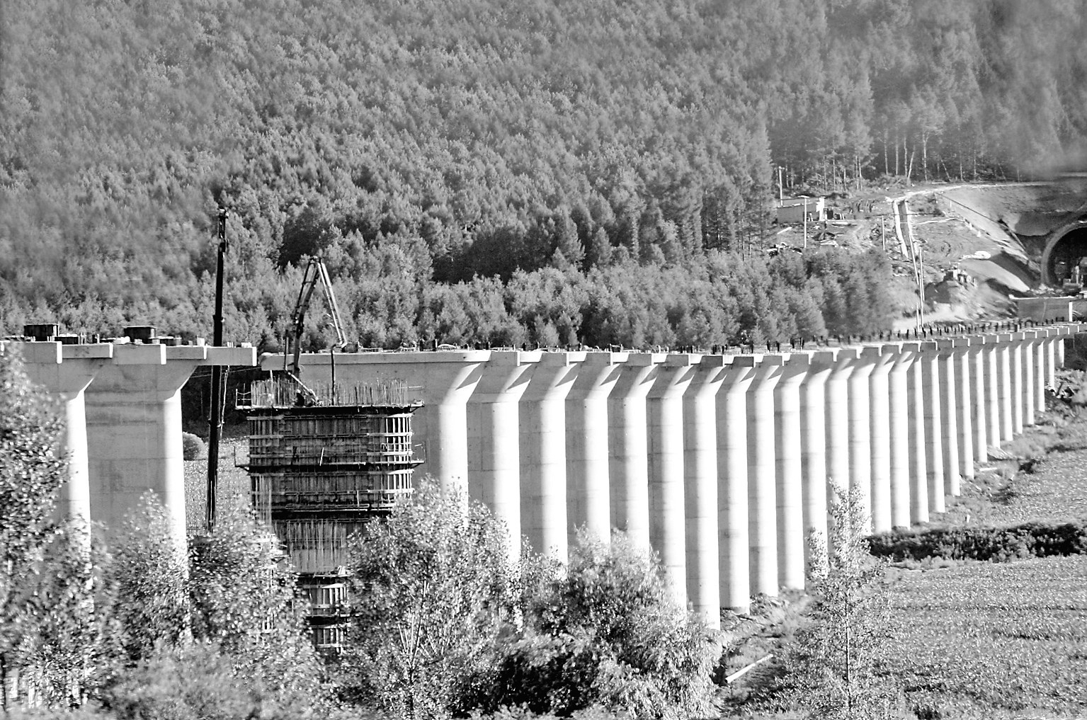 近日,在哈佳高铁依兰段施工现场,工人正进行桥墩浇筑和桥梁架设等工程。据了解,该高速铁路是哈尔滨至佳木斯的电气化双线铁路,线路全长343公里,设计时速200公里,预计2019年完工。 本报记者苏强摄