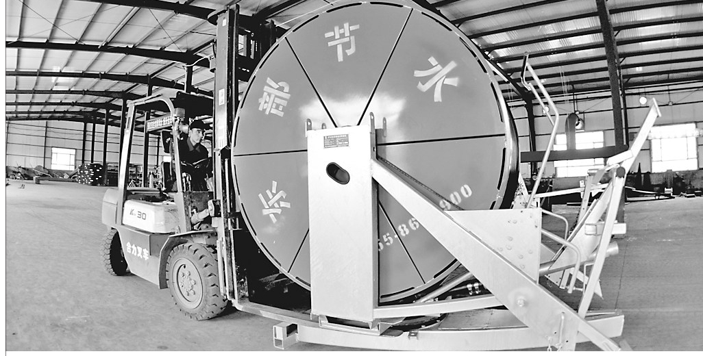 黑龙江东部节水设备有限公司生产的大型节水喷灌设备对农业现代化发展具有引领作用,有力地推动了农业向规模化、科学化、集约化方向发展。该公司位于绥化市东富工业园区,是一家专业从事节水灌溉设备研发、生产与销售服务的高新技术企业,去年实现销售收入8000万元,利税600万元。图为工人正在装运节水设备。 许来齐本报记者邵国良摄
