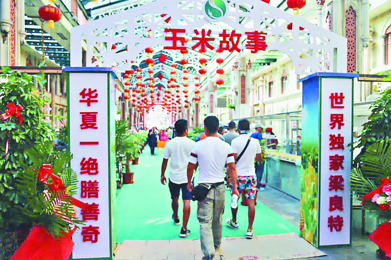 本报28日讯(记者谭迎春)28日,在哈尔滨市南岗区果戈里大街的“印度风情街”,“玉米故事”四个大字特别醒目,“玉米故事”一条街正式“现身”果戈里大街。 “免费品尝玉米面发糕,玉米面月饼,好吃又健康!”记者看到,现场正在举办免费试吃活动,前来询问的市民更是围满了展台。 据了解,这里有玉米面水饺、玉米面条、方便面以及40种中西式点心等系列产品,所有产品均是采用玉米深加工创新技术,实现了玉米直接转化成面粉的新创举。近百名市民现场参加玉米面包饺子大赛,热闹非凡。 黑龙江省会议展览旅游联合总会是我省绿色食品推广机构,据联合总会秘书长崔双亭介绍,在第27届哈洽会和新博会上,省会议展览旅游联合总会引进并推出“龙之绿”品牌的玉米面粉创新技术及系列食品项目,通过创新技术和全自动生产设备加工出纯玉米粗粮超精面粉,转化成为人们餐桌上的主食。 “玉米故事”一条街体验店总经理张广富说:打造“玉米故事一条街”,可以向全国游客及市民提供免费品尝,现场体验自己用玉米面粉做饺子、面条、发糕等系列面食。中秋将至,市民还可以在这里亲身体验现场手工制作玉米面月饼! 图为“玉米故事”一条街。 本报记者谭迎春摄