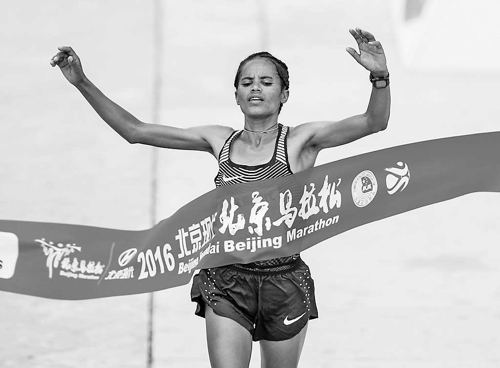 新华社北京9月17日电(记者韦骅汪涌)第36届北京马拉松赛17日早上在天安门广场鸣枪起跑,来自埃塞俄比亚的加布雷携两名同胞分获男子组前三名,女子组冠、亚军同样被埃塞俄比亚选手收入囊中。这也是继2014年之后,埃塞俄比亚选手又一次包揽北马的男、女冠军。 在男子组中,在33公里左右时,第一方阵只剩下了三名来自埃塞俄比亚的选手。最终,加布雷以2小时11分9秒的成绩第一个冲过终点,达迪与贝克莱分列二、三位。 在女子组方面,比鲁以2小时25分56秒的成绩获得冠军,她的同胞托拉获得亚军。 自1981年创办以来,北京马拉松今年已经来到第36届,起点和终点分别设在天安门广场和奥林匹克公园景观大道中心区庆典广场。本次北马的参赛规模为30000人,共有超过66000人报名,再次创造了国内全程马拉松报名人数的新纪录。 图为埃塞俄比亚选手比鲁·门迪图冲过终点线。 新华社记者张晨摄