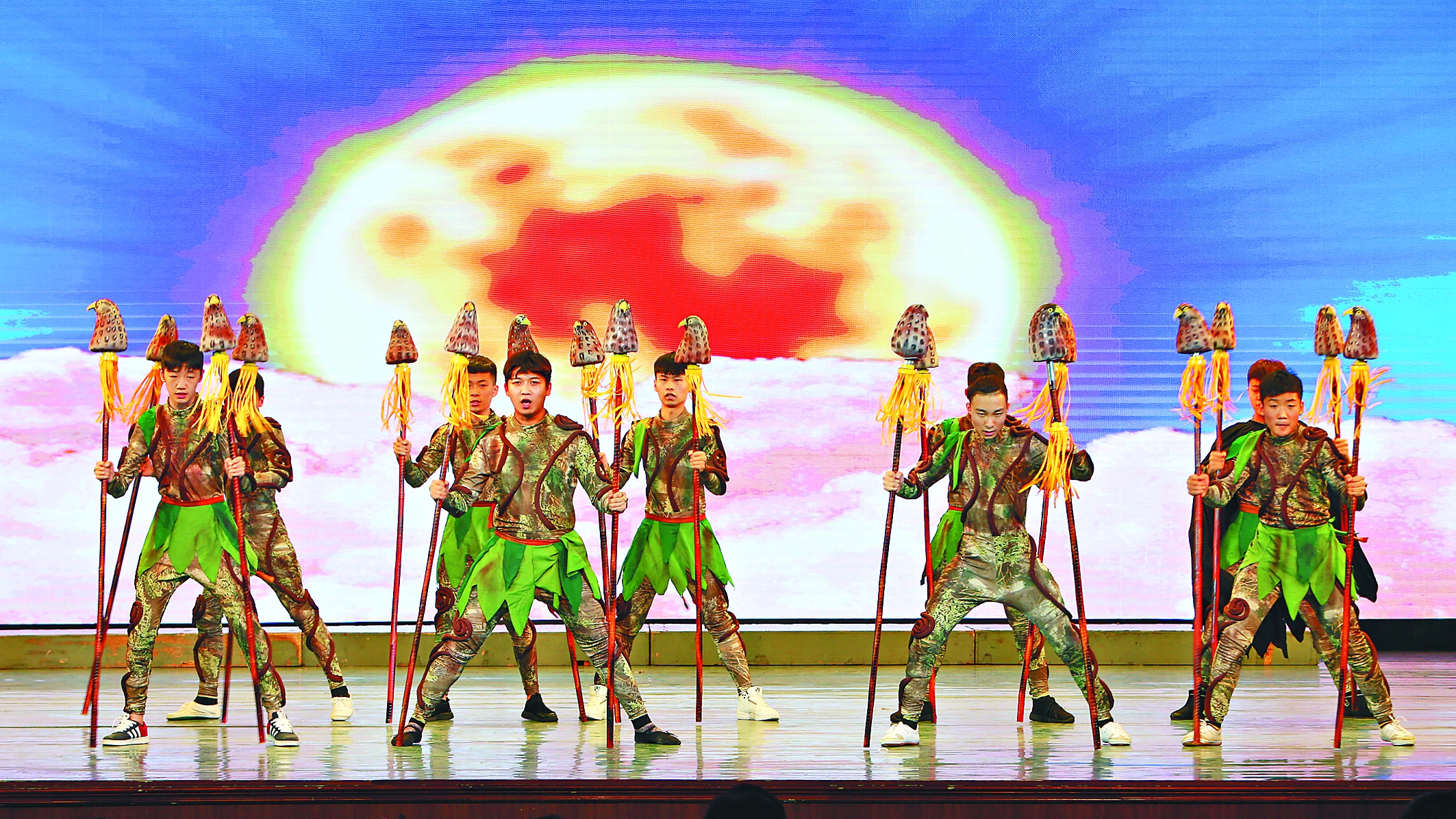 本报讯(记者杨宁舒)为贯彻习总书记的重要讲话精神,黑龙江艺术职业学院创作排演的大型原创音乐剧《太阳的部落》,将于11月4日至6日在哈尔滨环球剧场隆重推出,这也是我国首部反映赫哲族人生活的音乐剧,堪称现代版的《伊玛堪》。 《太阳的部落》取材于被联合国教科文组织列入“急需保护的非物质文化遗产名录”的赫哲族经典说唱艺术的《伊玛堪》。该剧编剧高长顺、王建平,作曲隋利军,导演刘南、王艳君,编舞吴保江,剧中主要人物由梁岚、曲奉军、冯冬、李奇、柴鑫等我省著名声乐表演艺术家联袂出演,省艺术职业学院青年师生也将在舞台上崭露头角,演职人员百余人,阵容庞大。该剧撷取了《伊玛堪》中的主要故事情节、民族风俗、人物塑造、宗教礼仪、理想追求等,同时又融入了现代艺术元素和审美理念,是我国首部反映赫哲人生活的音乐剧,是现代版的《伊玛堪》,具有强烈的艺术冲击力和感染力。 据介绍,黑龙江艺术职业学院是我省唯一一所国办的综合性艺术院校,建校已有半个世纪历史,培养了一大批优秀的艺术人才,有很多人才成为全国很有影响的艺术家。如大家所熟知的作家张抗抗,戏曲表演艺术家白淑贤、邢美珠,歌唱家牟玄甫、刘和刚,器乐演奏家薛苏里,舞蹈编导唐文娟等。近年来,该院相继创作排演了一批原创文艺剧(节)目,如反映“最美女教师”张莉丽的原创大型话剧《师爱芬芳》,2014年参加全国第四届“校园戏剧节”获最高奖——优秀剧目奖;反映“和平使者”嘎丽娅的原创大型话剧《张嘎丽娅》,在庆祝中国人民抗日战争胜利暨世界反法西斯战争胜利七十周年之际,赴俄罗斯阿穆尔州参加当地庆典演出;此次创排《太阳的部落》,更将该院的创作演出实践活动推向高潮。 图为《太阳的部落》剧照。