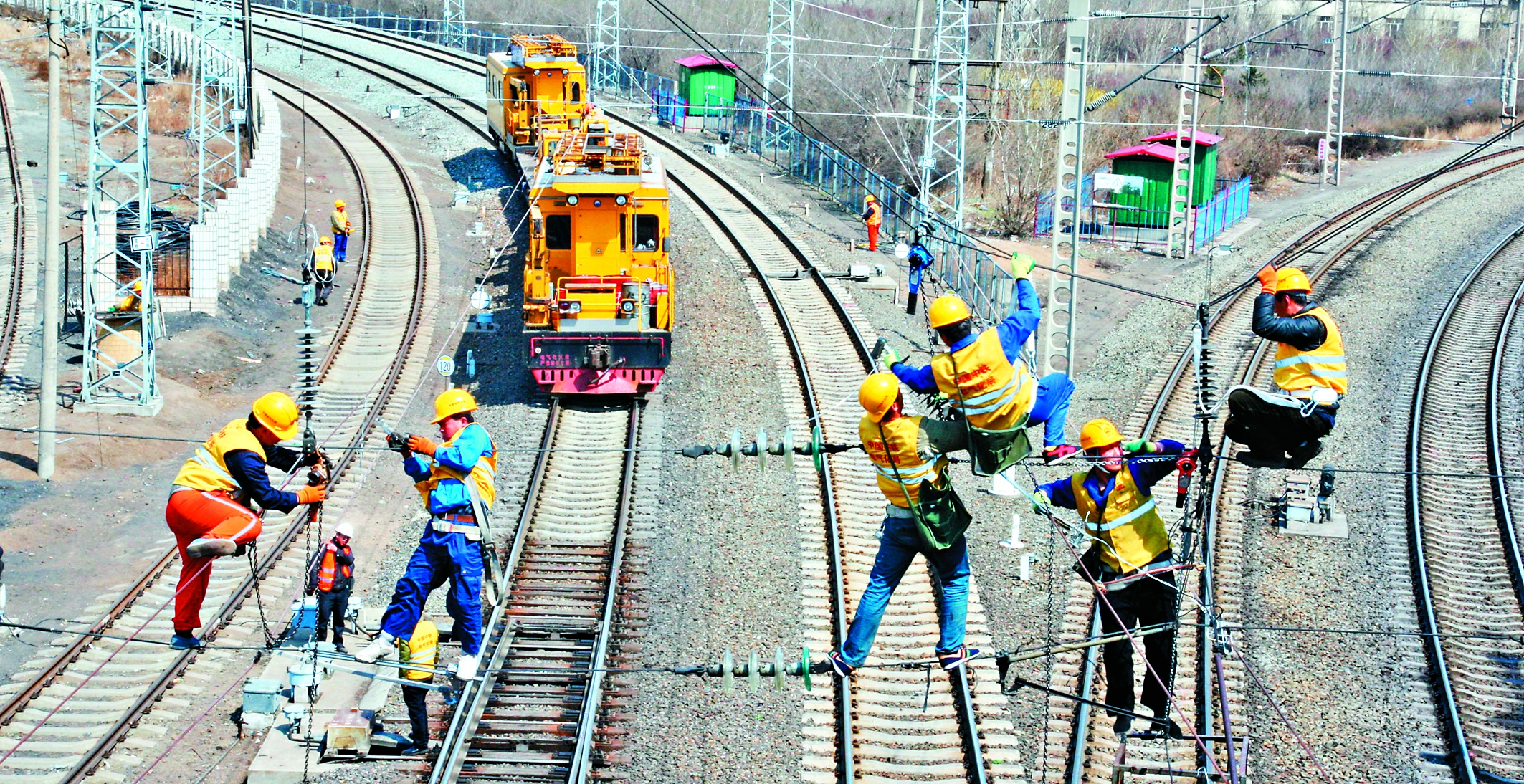 哈尔滨火车站铁路供电设施改造现场。 本报记者苏强摄