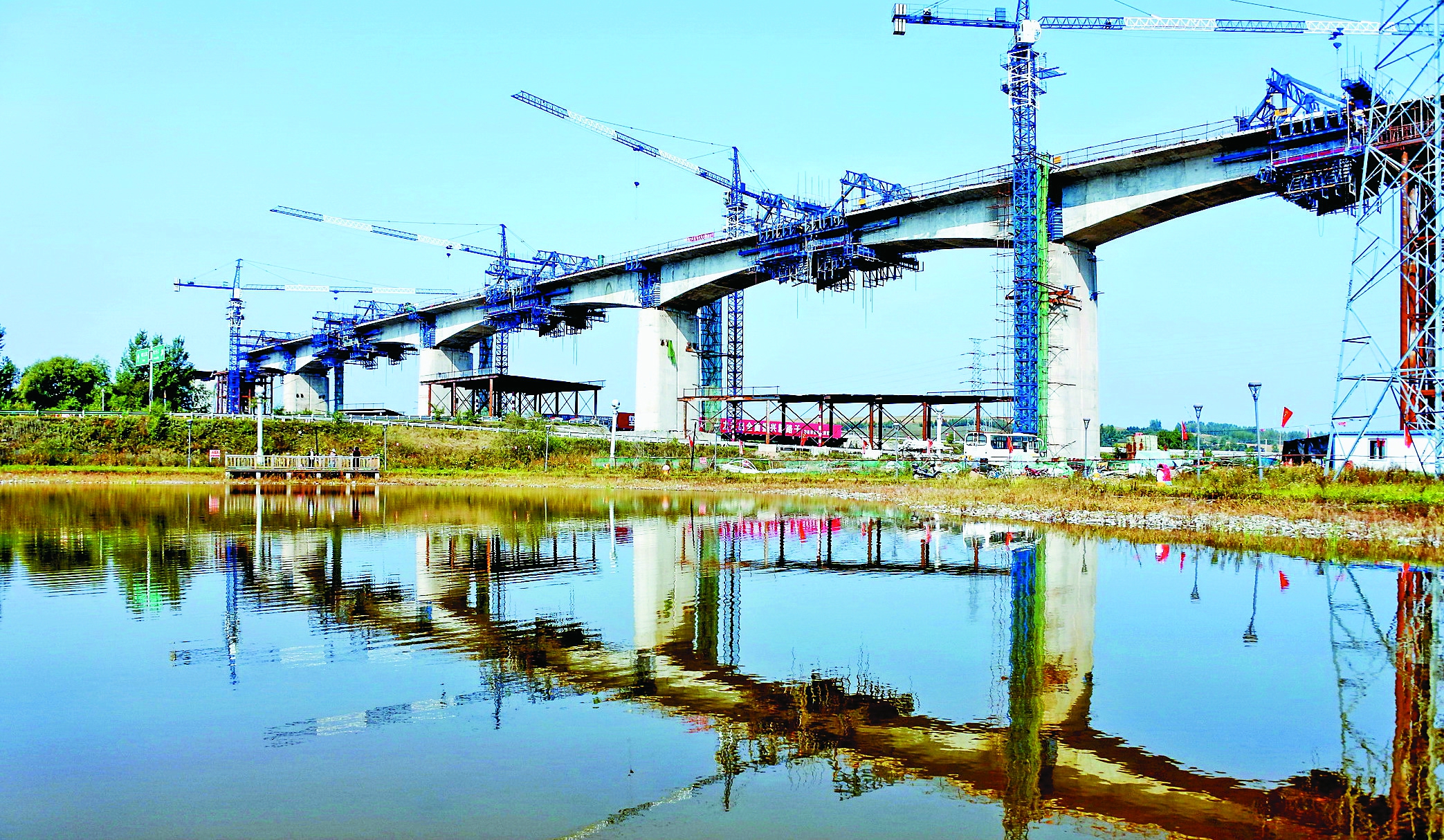 哈牡客专斗银河特大桥施工现场。 本报记者邵国良摄