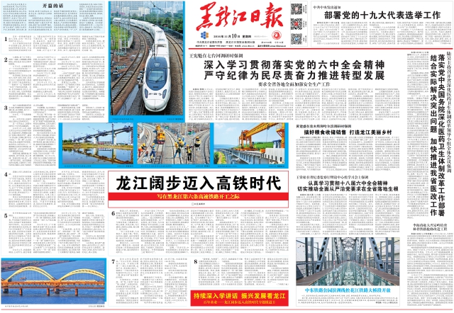 写在黑龙江第六条高速铁路开工之际 □本报编辑部 开篇的话 2016年是龙江发展史上的重要里程碑,习近平总书记亲临我省考察工作,两次针对龙江发表重要讲话;2016年也是龙江开启全面振兴新征程的开局年,在省委省政府的坚强领导下,全省上下深入学习贯彻落实总书记重要讲话精神,坚持以经济建设为中心,贯彻落实新发展理念,坚定实施“五大规划”,发展十大重点产业,扬长避短、扬长克短、扬长补短,取得了显著成效,正奋力走出一条黑龙江全面振兴新路子。 发展现代农业,实现农业增产农民增收的成效;转方式调结构,做好“三篇大文章”的创新;推进“龙江丝路带”建设,开放格局不断优化升级的路径;加大基础设施建设力度,实现经济平稳持续增长的势头;保障和改善民生,有力维护社会发展和谐稳定的努力;发展旅游产业,把生态资源变成金山银山的探索;大力发展现代服务业,产业结构不断调整优化的进程;深入推进法制建设,形成全面振兴好环境的图景;发力产业项目建设,一产、三产发展强劲的力量;加强干部队伍建设,形成良好政治生态的新貌……全省各行各业推动总书记重要讲话精神落地生根的生动实践和饱满热情,值得我们记录、聚焦、阐释。 本报即日起持续重磅推出“持续深入学讲话振兴发展看龙江”主题报道。今日请看本报编辑部文章——《龙江阔步迈入高铁时代写在黑龙江第六条高速铁路开工之际》。 1 总有一些普通的场景耐人寻味,总有一些平实的细节打动人心。 当人们徜徉在哈尔滨中东铁路公园,探寻百年铁轨的斑驳印记时,不远处纵贯如虹的高铁特大桥上,飞掣如电的列车总会不期而至。这一刻的遇见,其来有自。是新与旧的回响,是中与西的交汇,是来与往的撞击,也是感怀与希望的链接。 铁路,对于这片广袤的黑土地,具有鲜明的时空感。曾经,中东铁路从欧洲大陆带来了工业化的季风,曾经,驰骋于田野山林矿山的列车为年轻的共和国输送丰富的动力与养料,如今,越织越密的铁路网为龙江的振兴发展铺设了钢铁跑道。 向着发展的目标,循着科学的理念,“龙江号”列车正以饱满的热情、充沛的动力行进在“新长征”的关键一程。 2 七星峰,是三江平原上的第一高峰,山势巍峨,峥嵘峭拔,曾经是东北抗日联军根据地。 11月8日,七星峰迎来了一个历史性的时刻——牡丹江至佳木斯铁路客运专线建设正式开工。 牡佳铁路,是黑龙江继哈大、哈齐、哈佳、哈牡、牡绥之后开工建设的第六条高铁,它的开工标志着黑龙江“一轴两环一边”铁路网的“东环”开始形成环路。未来,牡佳铁路将与哈大、哈齐、哈佳、哈牡、牡绥等铁路构成我省快速铁路网。标志着奋进的黑土地,奔跑着迈进高铁时代! 站在这个时间节点上回望,在过去的三年里,一张“铁路建设时刻表”,既包含好戏连台的喜悦,又透出次第花开的从容: 2014年2月26日,中俄同江铁路界河桥开工建设; 2014年7月9日,新建哈佳快速铁路开工; 2014年12月15日,新建哈牡客运专线开工; 2015年6月13日,哈欧国际货运班列从哈尔滨首发; 2015年8月17日,哈齐高速铁路正式通车运营; 2015年12月28日,牡绥铁路扩能改造工程全线竣工通车; 2016年2月27日,首班哈俄班列发车; 2016年6月7日,哈尔滨至漠河列车提速运行; 2016年11月1日,百年滨洲铁路进入电气化时代; …… 一份份“时刻表”,就是一张张“成绩单”,更新了龙江铁路建设的发展史,也记录下龙江发展振兴的节奏。 贯通龙江大动脉。“一轴两环一边”铁路网主骨架粗具规模,“一轴两环一边”,即以绥满铁路为“一轴”,以“哈牡鸡七双佳哈”东部快速铁路环线和“哈大齐北绥哈”西部快速铁路环线为“两环”,沿边铁路为“一边”。到2020年,全省铁路营业里程力争达到7500公里以上,县级城市通达率达到75%,复线率和电气化率达到50%以上。以哈尔滨为中心的快速铁路网,形成哈大齐1小时经济圈、哈佳牡2.5小时经济圈、哈尔滨至四煤城3小时经济圈。黑土地上的铁路血脉,正为龙江实现全面振兴注入强大动力。 近年来黑龙江的铁路建设可谓异彩纷呈。从规模视之,集中开工、鸿篇巨制前所未有;从格局视之,内外联动、先后配合国内鲜见。毋庸置疑,在中国铁路交通全面建设升级提速的“交响乐”中,黑龙江是最具华彩的乐章。 3 龙江大地铁路建设的风生水起,西通欧洲东出海的波澜壮阔,追本溯源,来自于一个更加伟大的构想。 2013年,一个充满想象力的年份。 这一年的中国,创造性地定义着自己的世界方位。 这一年的龙江,创新性地作出了自己的关键抉择。 2013年9月、10月,国家主席习近平在出访哈萨克斯坦、东盟国家时,相继提出建设“丝绸之路经济带”、建设“21世纪海上丝绸之路”的合作倡议。“一带一路”,从历史深处走来,贡献着中国智慧,南北呼应、东西互济,以一个整体概念呈现在世界面前,映照着中国一步步走向伟大复兴梦想的前行足迹。 政策沟通,道路联通,贸易畅通,货币流通,民心相通。发展互联互通,是“一带一路”优先选项。龙江铁路建设的大发展,正是抓住了历史性的伟大瞬间,实现了破茧而出、羽化成蝶。 天道酬勤,龙江铁路大发展的引擎在这个充满想象力的年份启动了。 哲人说,“善于在做一件事的开端识别时机,这是一种极难得的智慧。”这种“识别时机”的“智慧”叫做把握机遇。看似机遇眷顾,实则水滴石穿,是在一定的历史过