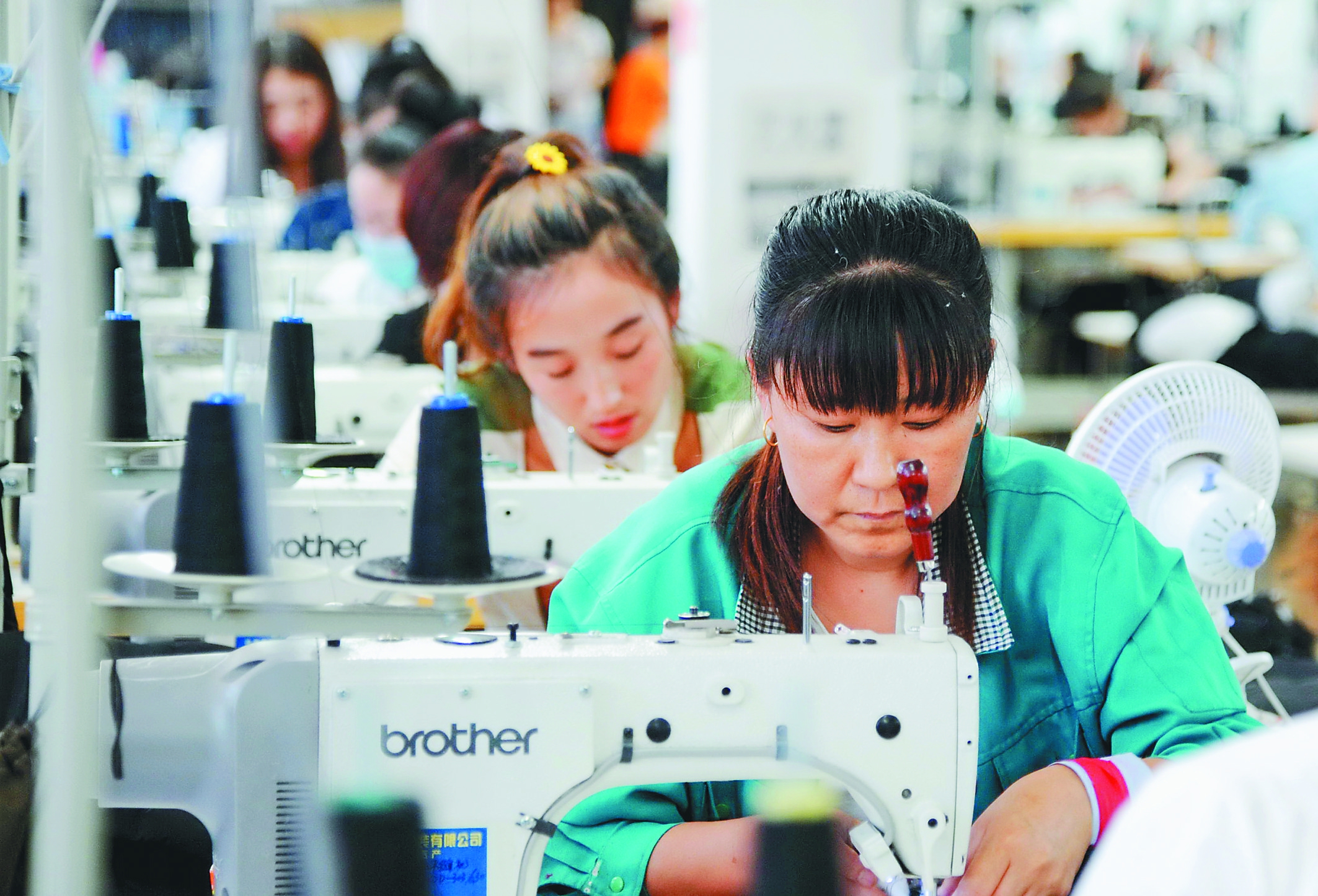 兰西县一家外向型服装加工企业的车间内,员工正在紧张工作以完成来自欧洲的一笔线上订单。今年以来,当地全面推进“互联网+工业”工程,利用互联网升级区域内传统工业,打造智慧工厂,大大地提升了企业的产出效益。赵威本报记者郭俊峰摄
