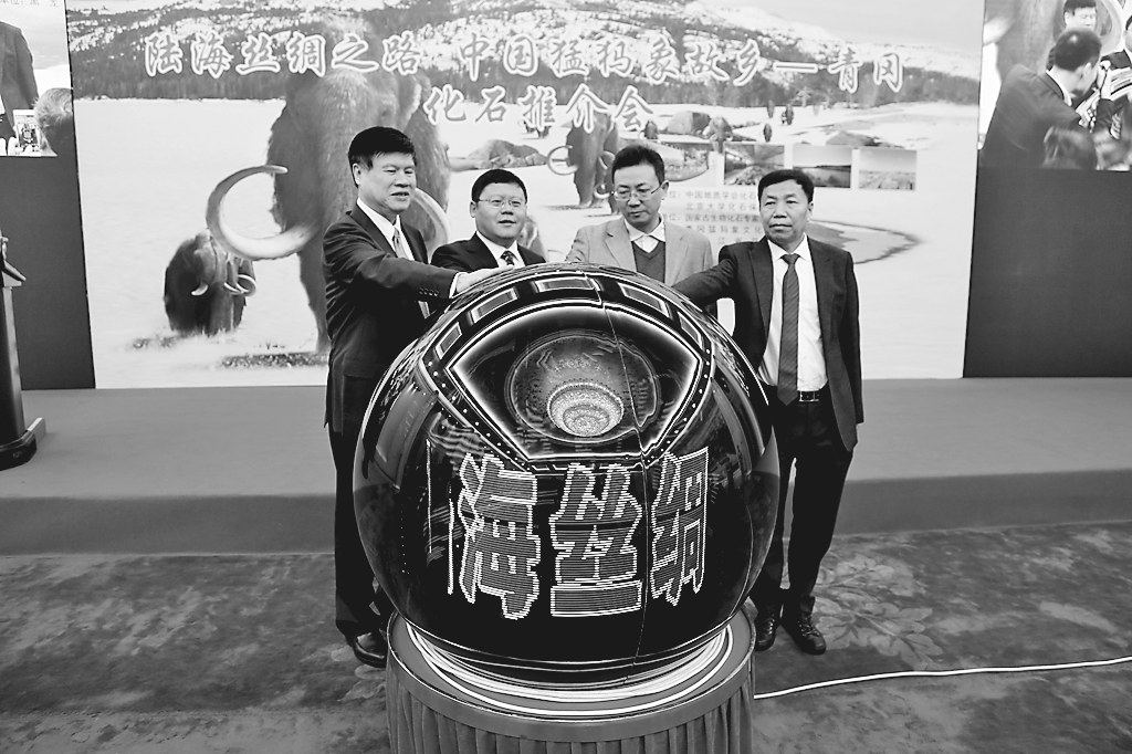 □文/摄殷晓光王彦斌本报记者程瑶 11月20日,“陆海丝绸之路”中国猛犸象故乡——青冈化石推介会在人民大会堂北京厅隆重举行,会上进行了“中国猛犸象故乡——青冈”化石资源申报世界自然遗产项目委托签约仪式。推介会旨在叫响“中国猛犸象故乡”品牌,彰显青冈化石瑰宝魅力。国家、省、市相关部门领导,专家学者,企业家代表,各级相关媒体百余人参加了本次活动。 “青冈既是全国粮食生产先进县、全国生猪调出大县、全国造林绿化模范县,又被誉为中国猛犸象故乡、中国玉米之乡、中国万寿菊之乡。可谓人文底蕴深厚,自然资源丰富。与此同时,地处哈大绥一小时经济圈、哈大齐工业走廊辐射半径的青冈更是交通畅达,区位优势明显。随着‘中蒙俄经济走廊’黑龙江陆海丝绸之路经济带的规划建设,哈绥北黑、哈大齐产业集聚带辐射节点优势将更加凸显,青冈向南可借助哈欧班列、向北可通过黑河口岸,形成南北贯通的国际贸易大通道,将逐步成为滨北地区重要的交通节点和物流集散中心。”在推介会上,青冈县委书记杨勇首先向到场来宾介绍了青冈的资源优势和区位优势。杨勇还告诉与会嘉宾,猛犸象化石申报世界自然遗产工作正有序推进,青冈正致力于成为哈尔滨——五大连池——黑河旅游的重要节点。 中国科学院古脊椎动物与古人类研究所所长、中科院院士周忠和从发掘情况和学术角度两个层面向与会嘉宾介绍了青冈猛犸象化石的独特地位。从已发掘情况看,青冈境内22条小流域有15条以上出土过第四纪晚更新世动植物化石,涵盖猛犸象、披毛犀、双壳类、贝类化石等近50种,总量达10余万件,全国103家博物馆展出的猛犸象真骨化石标本,有100家已确定是来自青冈;从学术角度看,青冈猛犸象—披毛犀动物群物种多样性极高,在世界同类同时期动物群记录中首屈一指;青冈猛犸象—披毛犀动物群化石埋藏点如此集中、埋藏数量如此巨大,在世界范围内亦属罕见。古生物学家普遍认为:青冈猛犸象化石的发现,对于追溯第四纪陆相生物群的繁衍历史与消亡过程,对于研究现代中国人在东北地区的演化与扩散,对于揭示古人类与猛犸象—披毛犀动物群的关系均意义重大,具备了申报世界自然遗产的条件。 活动现场,青冈县被授予“北大化石保护中心青冈研学基地”牌匾。青冈县政府则与北京中基兴盛投资有限公司代表共同签订了“中国猛犸象故乡——青冈”化石资源申报世界自然遗产项目委托书。 启动推介会水晶球。